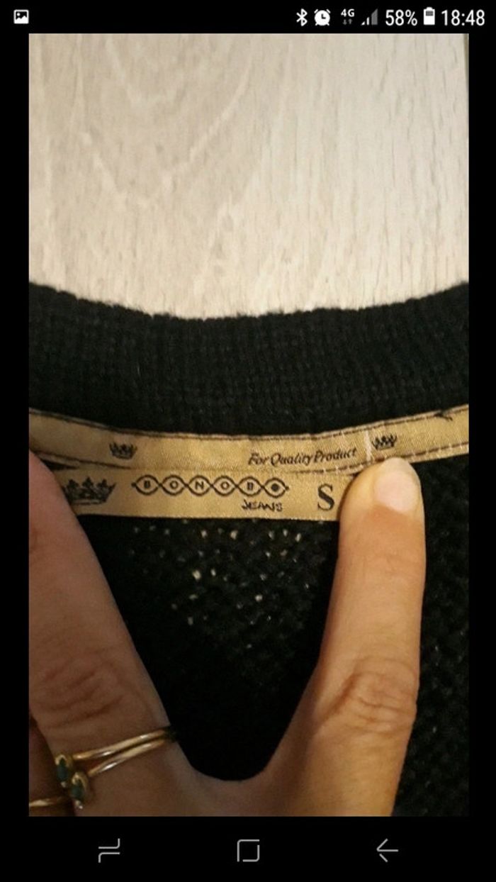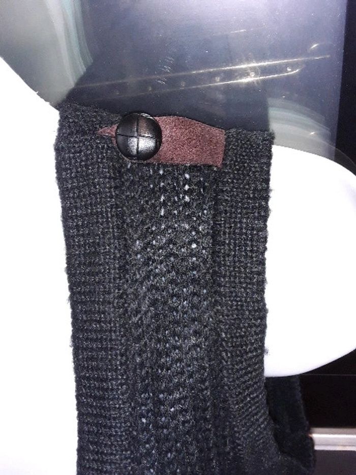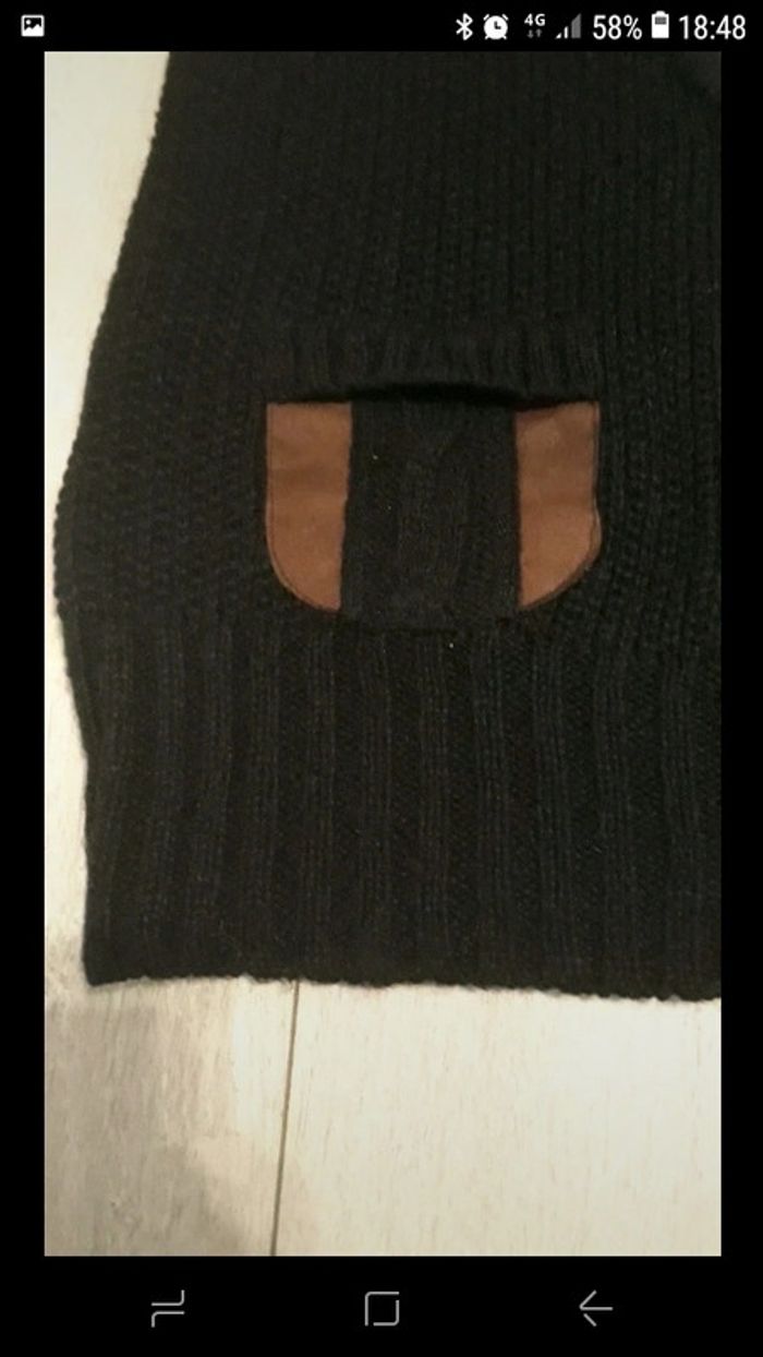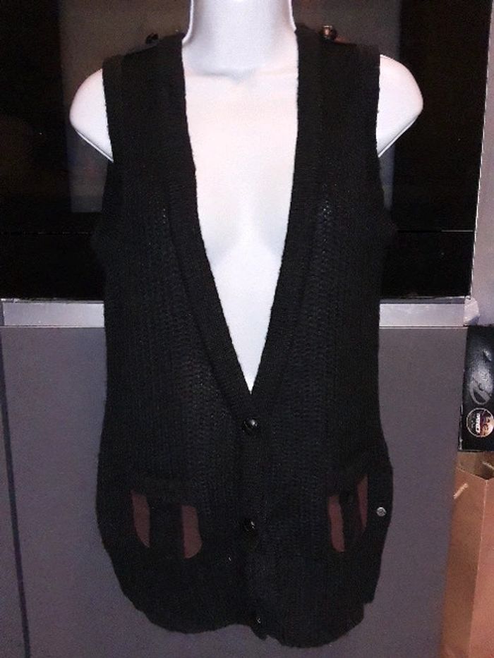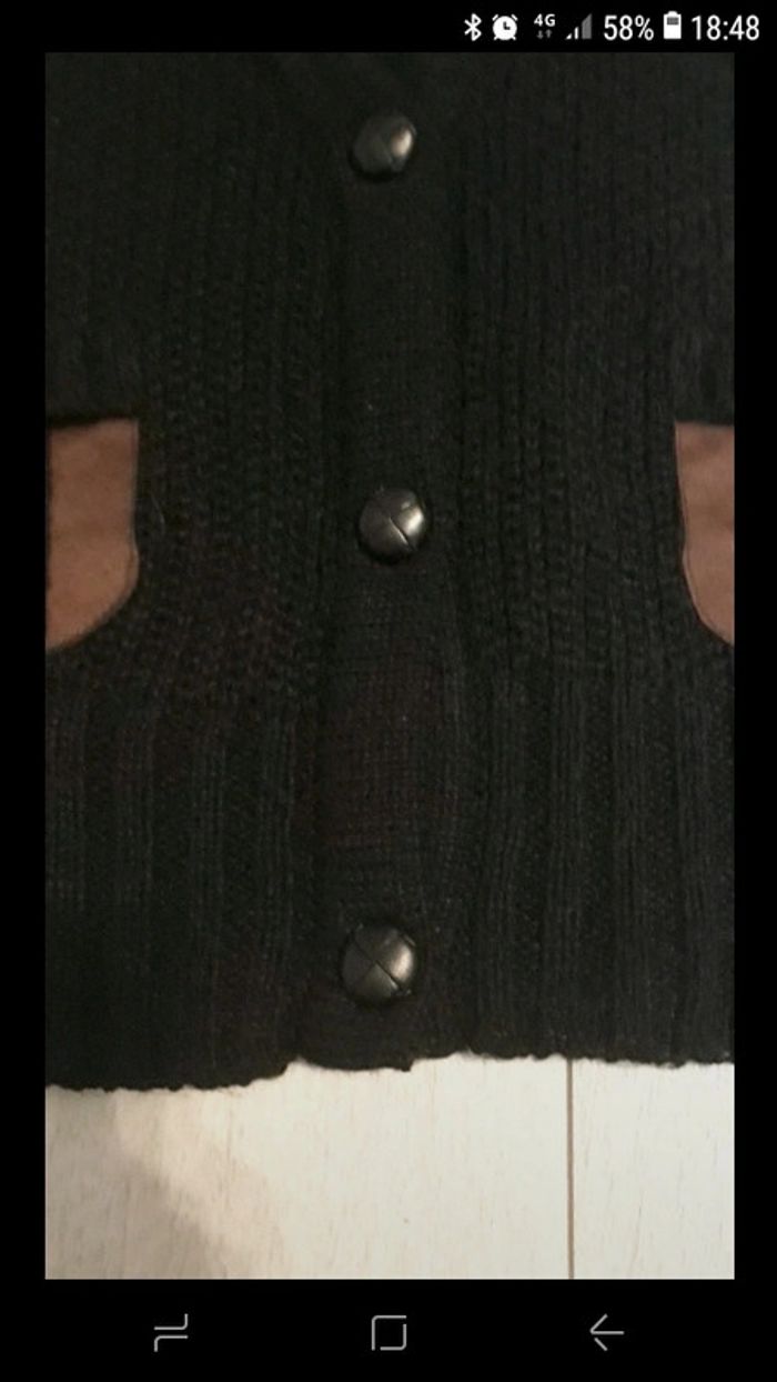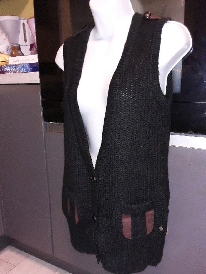 Gilet sans manches Bonobo taille S en maille noire Trois boutons sur le bas. 2 poches avec détails en daim marron 2 boutons sur les épaules avec détails en daim marron Très bon état #vayssadefemme36