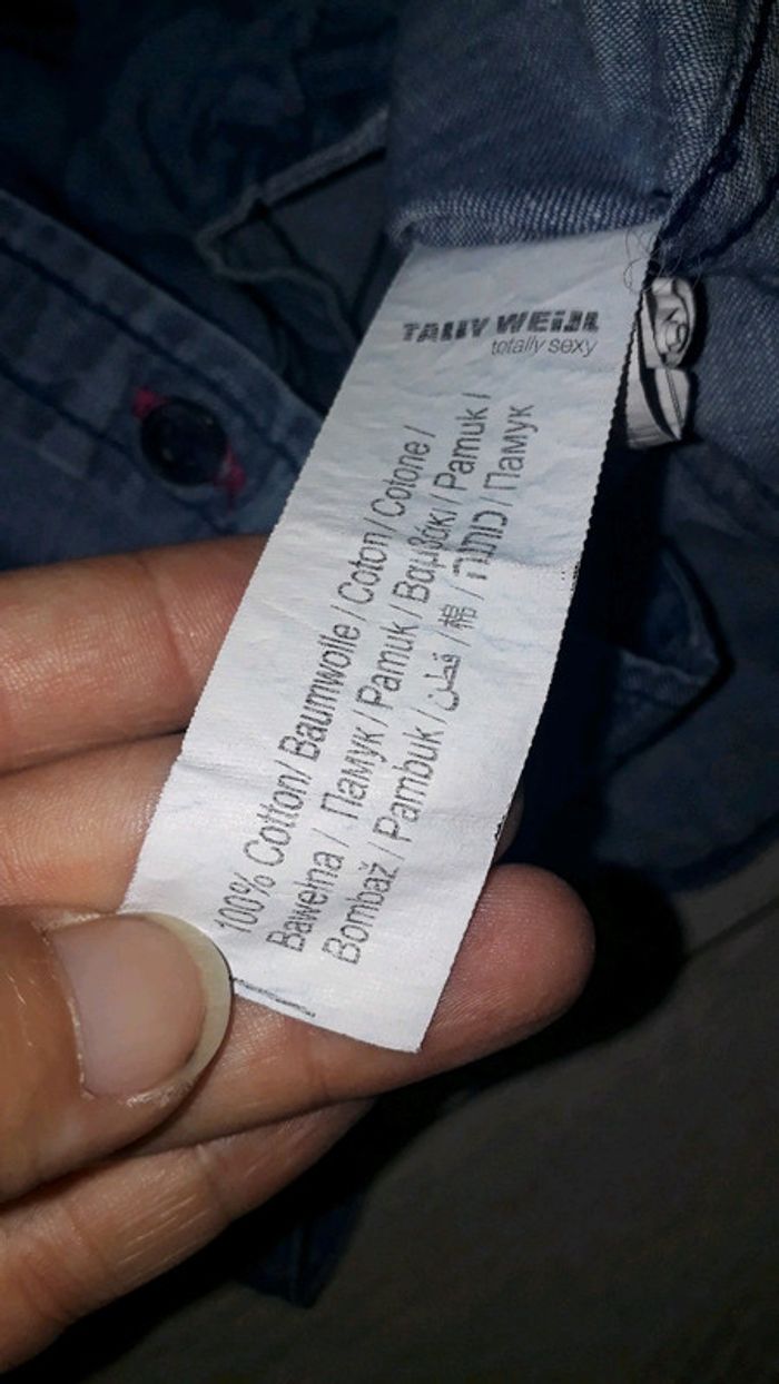 Chemise en jean fille taille 13 ans Tally Weijl Très bon état. Seul un bouton sur manche cassé (décoration) mais peut être changé car un bouton de rechange (photos) #vayssadefille13