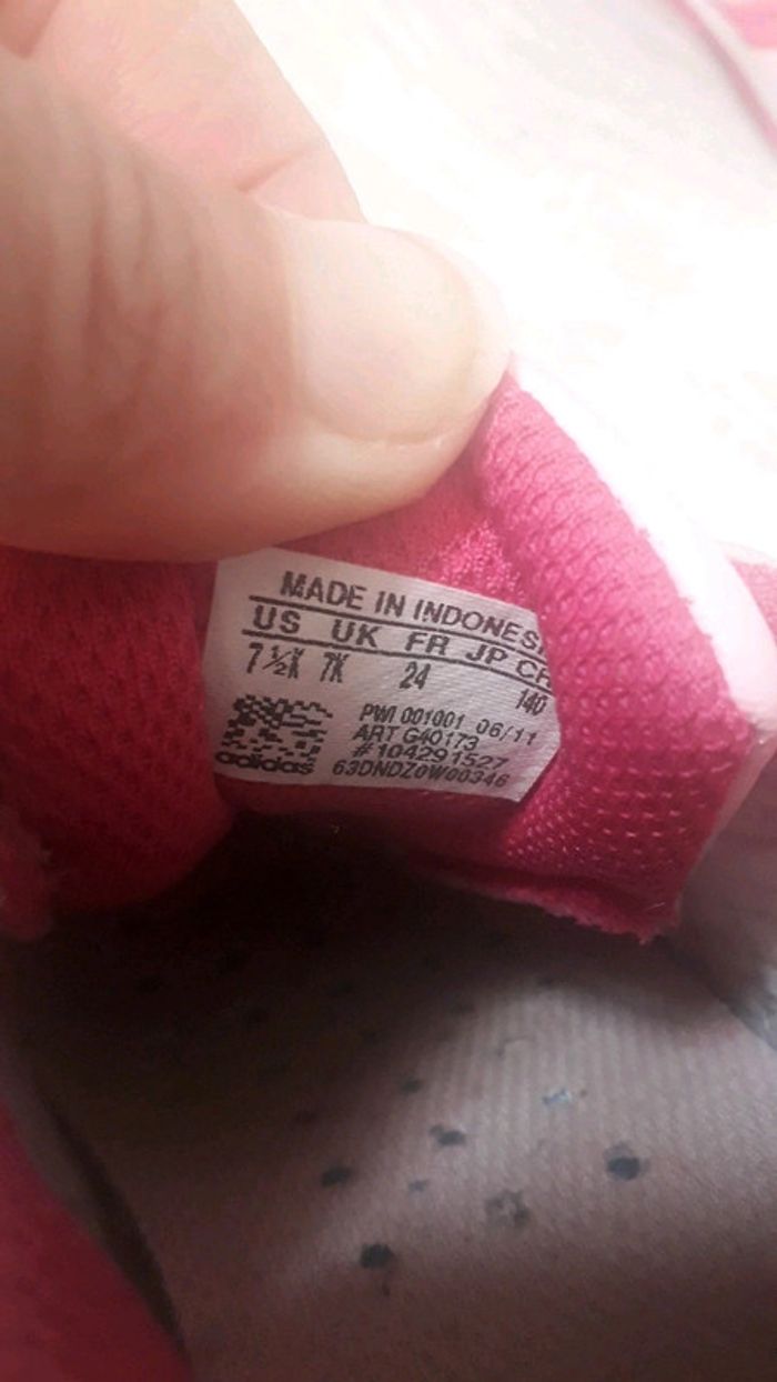 Basket Adidas fille pointure 24 Semelle en très bon état (photo) Juste une chaussures râpée sur le bout (photo) Envoi uniquement par mondial relais #vayssadechaussures