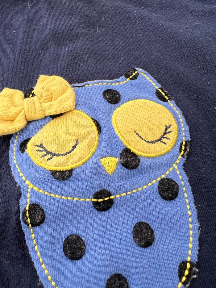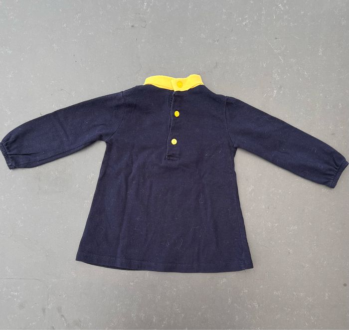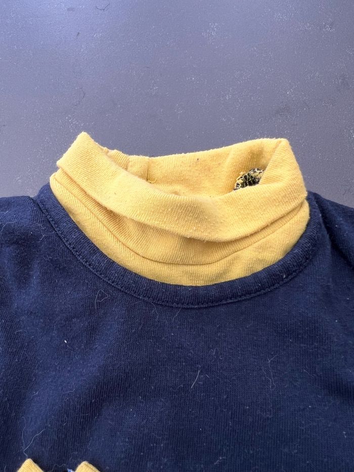 Tee-shirt à manches longues de couleur bleu marine, col roulé de couleur jaune. Motif hibou sur le devant, fermeture par 3 boutons au dos. En excellent état, aucune tâche ni trou, peu porté. 100% coton. Taille 2 ans, pas de marque. Envoi rapide et soigné, réduction automatique dès 2 articles sélectionnés dans mon dressing. Mes autres ventes de cette taille ici: #24moisfilleugolola #2ansfille #fille2ans #colroulé2ans