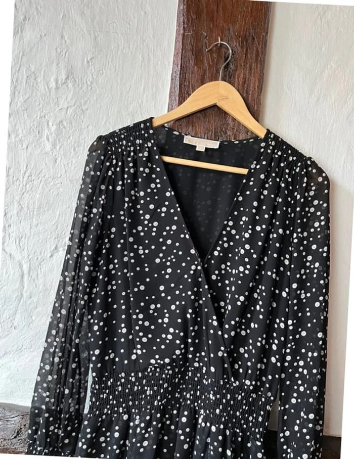 Jolie robe à pois Avec une coupe resserrée à la taille, col V Transparente au niveau des manches Michael Kors Taille M Portée une fois pour une soirée En parfait état #michaelkors #robepois #robemichaelkors #robesoiree #robechic #robesoiree #robenoire #blackdress #michaelkorsdress #tenuedefête #christmasoutfit #newyearsoutfit #weinachtsoutfit #partyoutfit #tenuederéveillon