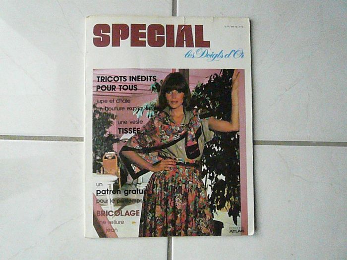 Livre Tricot « Spécial Les doigts d’or » Editions Atlas 50 pages avec des modèles pour femme, enfant et homme de tricot (pulls…), de crochet (gigoteuse pour bébé…), de couture (jupe…), de broderie (set aux légumes), de bricolage (cadre à tisser…), de tissage, de tapisserie… Photos en couleur. En très bon état.