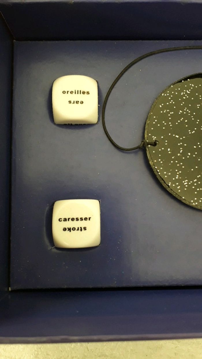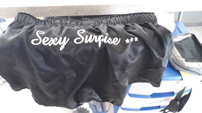 Coffret coquin de chez Celio contenant un caleçon avec inscription Sexy surprise, masque noir et argenté, et deux dés coquins à lancer pour faire une action sur une partie du corps (exemple mordiller l'oreille). Neuf jamais utilisé mais légère trace sous la boîte. Envoi uniquement par mondial relais #vayssadeaccessoires