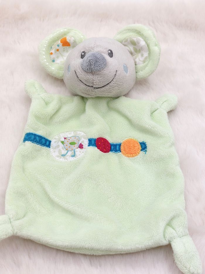 Doudou plat souris vert pastel gris NICOTOY oiseau papillon rond rouge orange Très bon état, étiquette coupée Envoi rapide Réf A12266 #minotresor #peluche #doudou #plush #knuffel #comforter #nicotoy