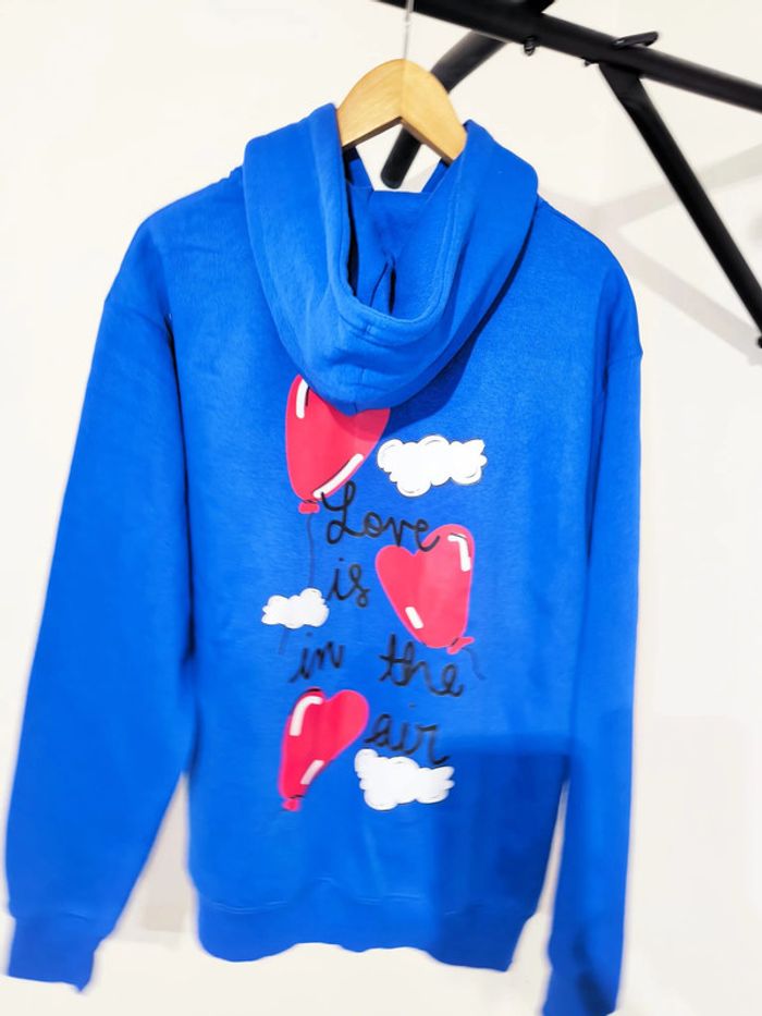 DESCRIPTION TOUTES LES TAILLES SONT DISPONIBLES Sweat capuche unisexe Logo "LOVE" Flocké Manches longues Capuche ajustable Couleur Bleu COMPOSITION 80% coton - 20% polyester ENTRETIEN Lavage en machine à 30°C Séchage tambour déconseillé Repassage à 110°C maximum