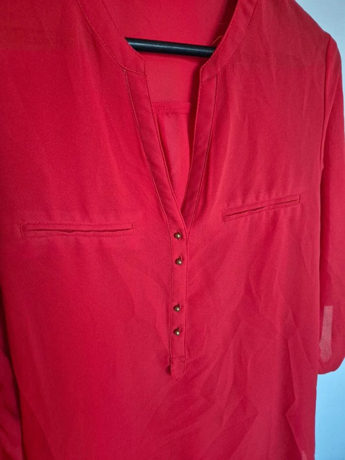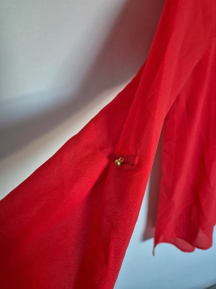 📌 Lot 20% de remise pour l'achat de 5 articles, suite ... Blouse en voile rouge, manche retroussable non transparent avec soutien gorge nude, ➡️Largeur à plat sous les bras  49 cm ➡️Longueur 64 cm ➡️ 100 % polyester ⭐ Excellent état ✈Envoi rapide des colis 💗 Abonnez vous à mon profil, nombreux articles ajoutés régulièrement ! 🌸 Tapez Laetitresors pour voir mes annonces #laetitresors_blouse38 #atmophere #rouge #dore #manche #longue #voile #chemisier #doré #bouton #manche #retroussable #laetitresors