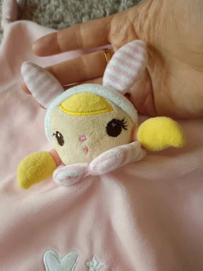 Doudou fille carré plat petite fille avec capuche lapin , je ne sais plus la marque, parfait état