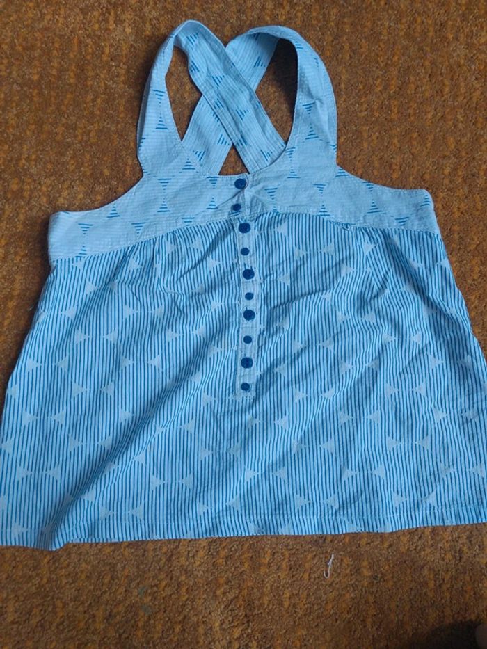 Top Sessun, haut du maillot blanc à rayures bleues et bas du maillot bleu à rayures blanches. Les bretelles sont fines, se croisent dans le dos. Ancienne collection. 100% coton. 42 cm Aisselle à aisselle 55 cm longueur totale #sessun #sessun36 #sessundonna #sessunmujer #sessunparis #sessunaddict #sessunfashion #sessuntaille36