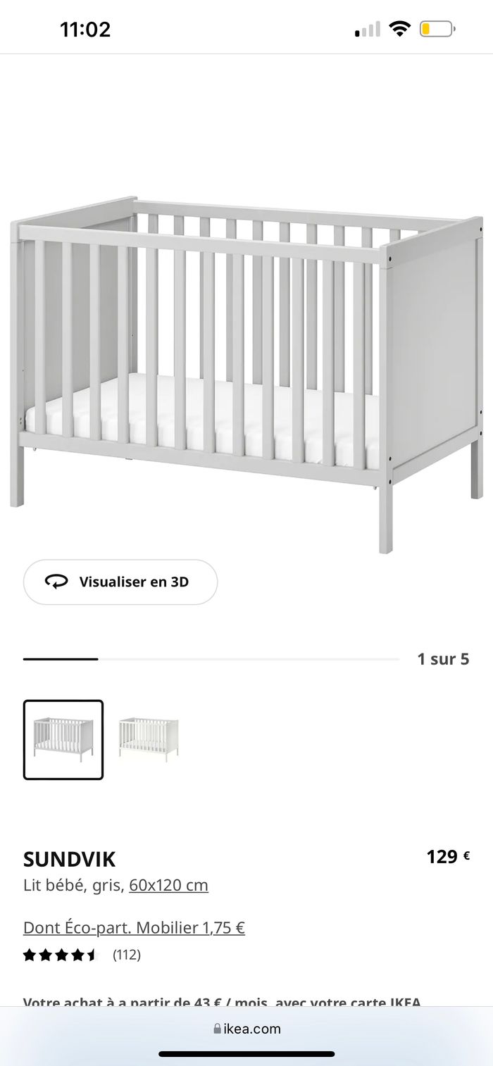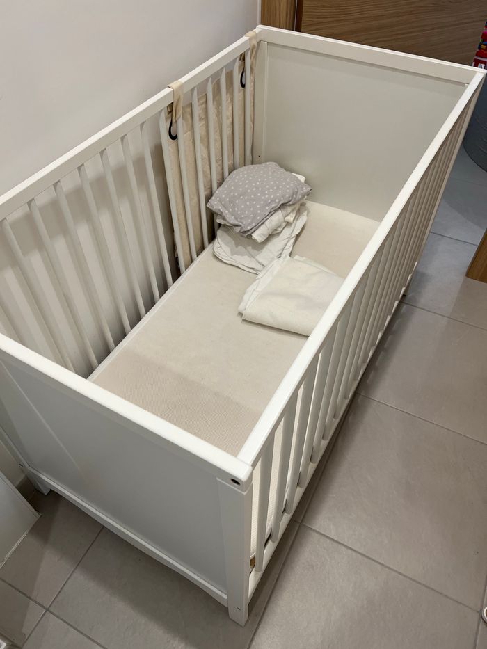 Lit bébé + matela + 2 alaises + 6 draps État comme neuf