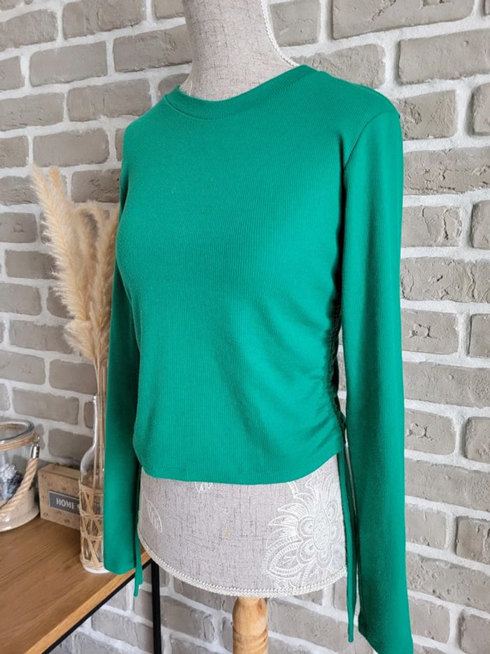 Joli top vert Zara froncé sur les côtés - photo numéro 1