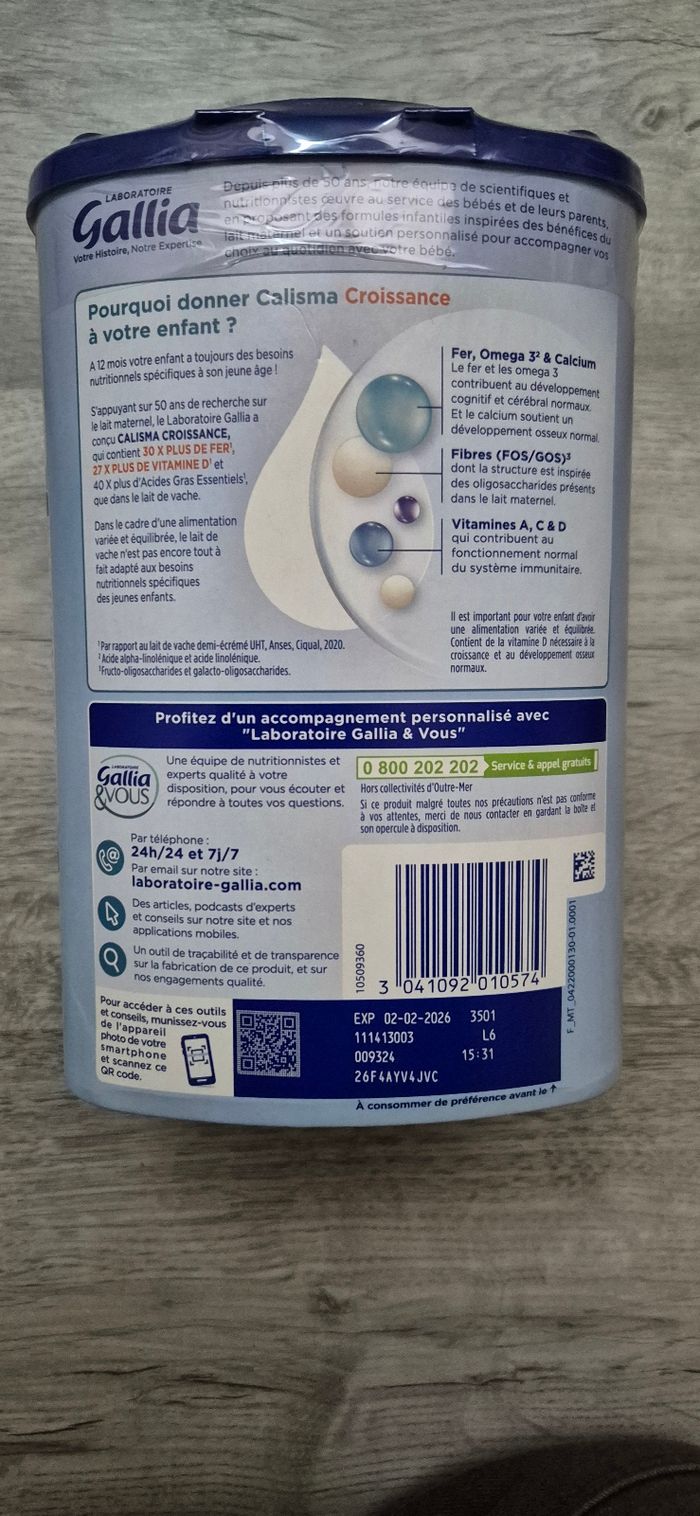 Lait gallia 3eme âge péremption 02/02/2026