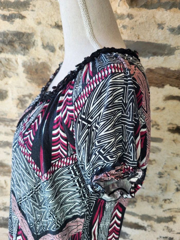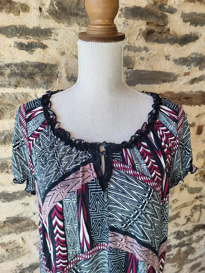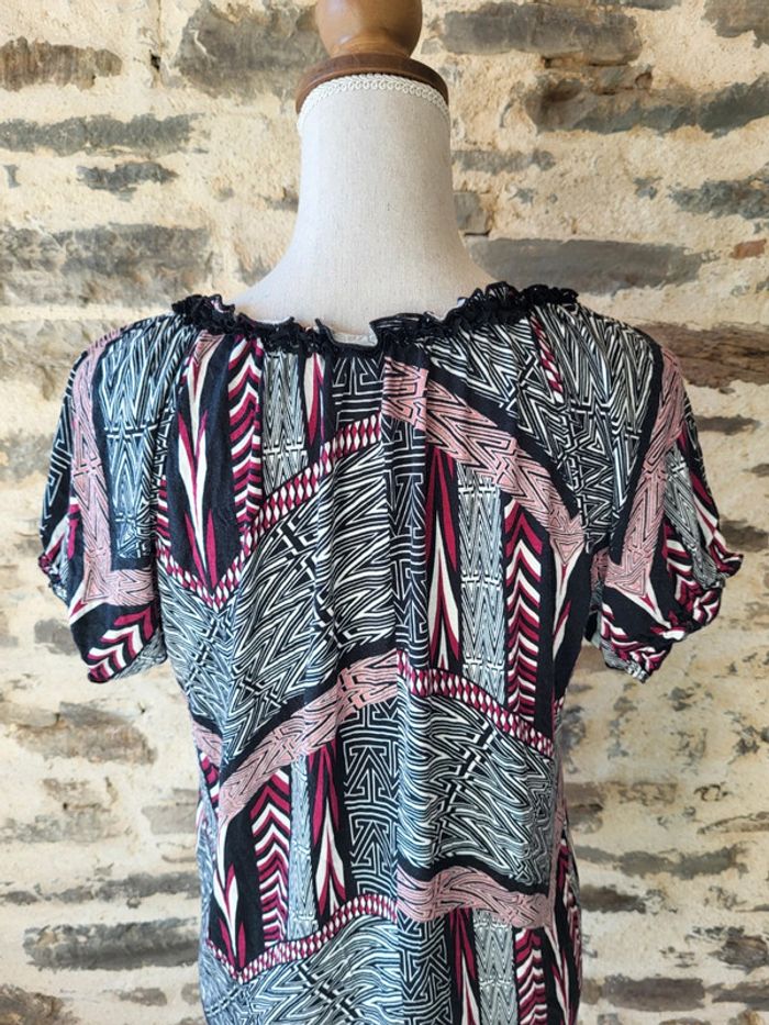 Blouse manches courtes à motifs noir blanc et bordeaux La Redoute Taille 3 ou 40