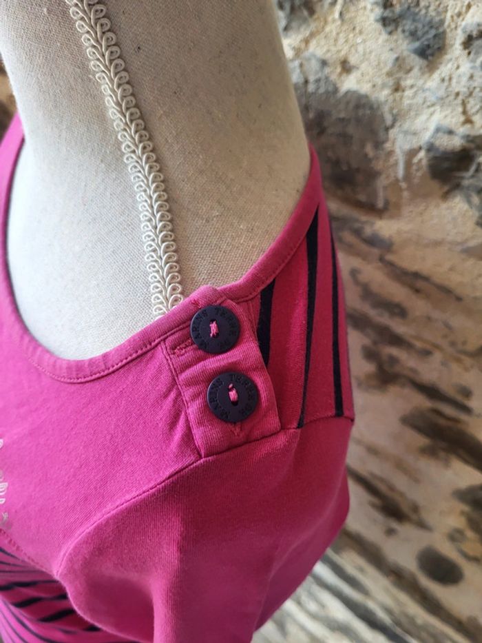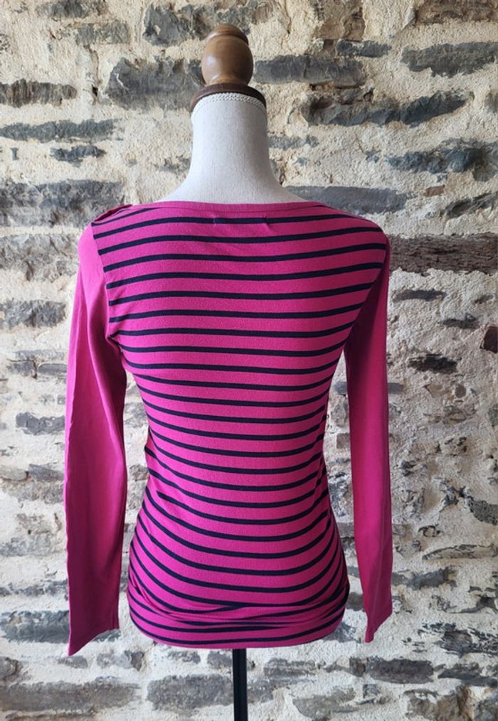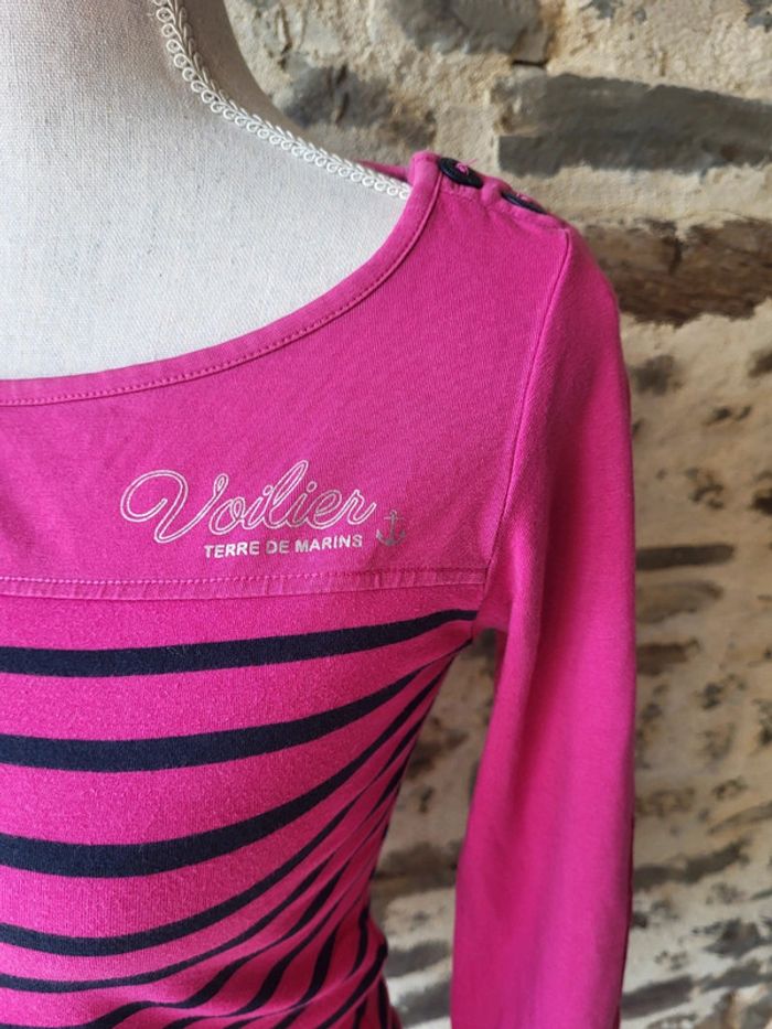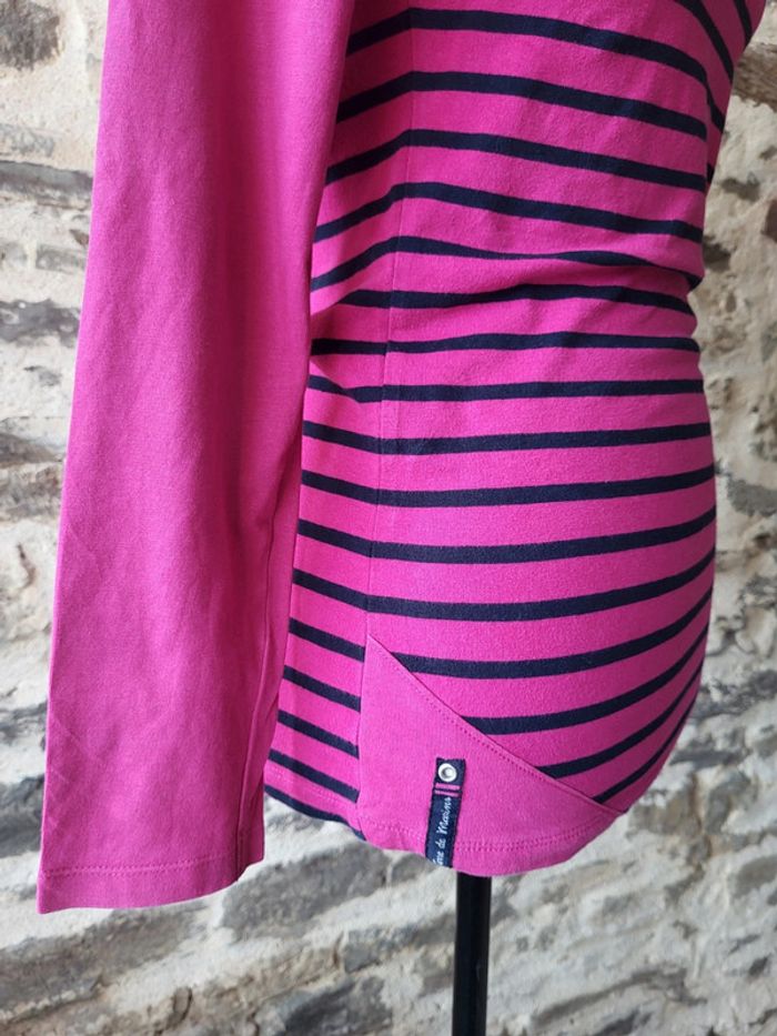 T-shirt rayé style marinière rose fushia et noir Terre de Marins Taille 1 ou 34 - photo numéro 8