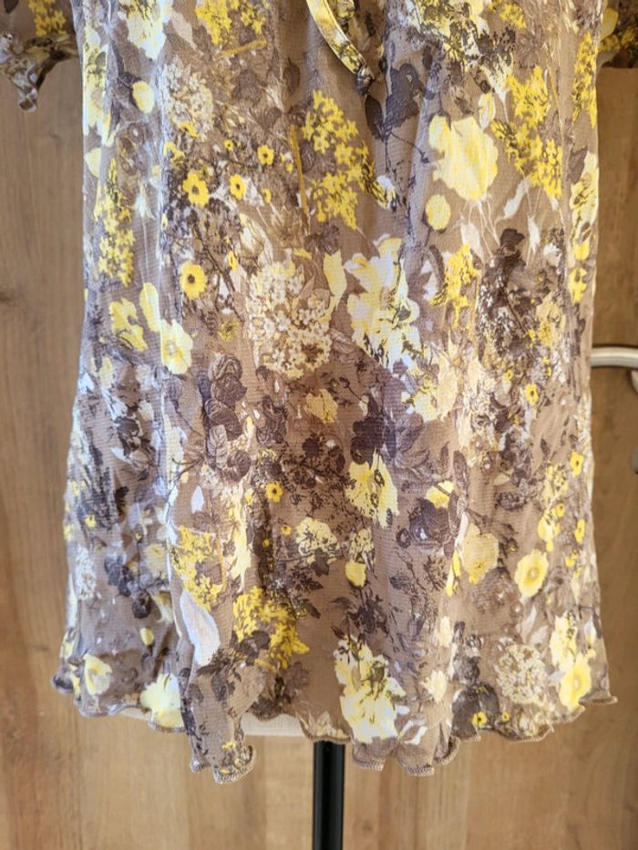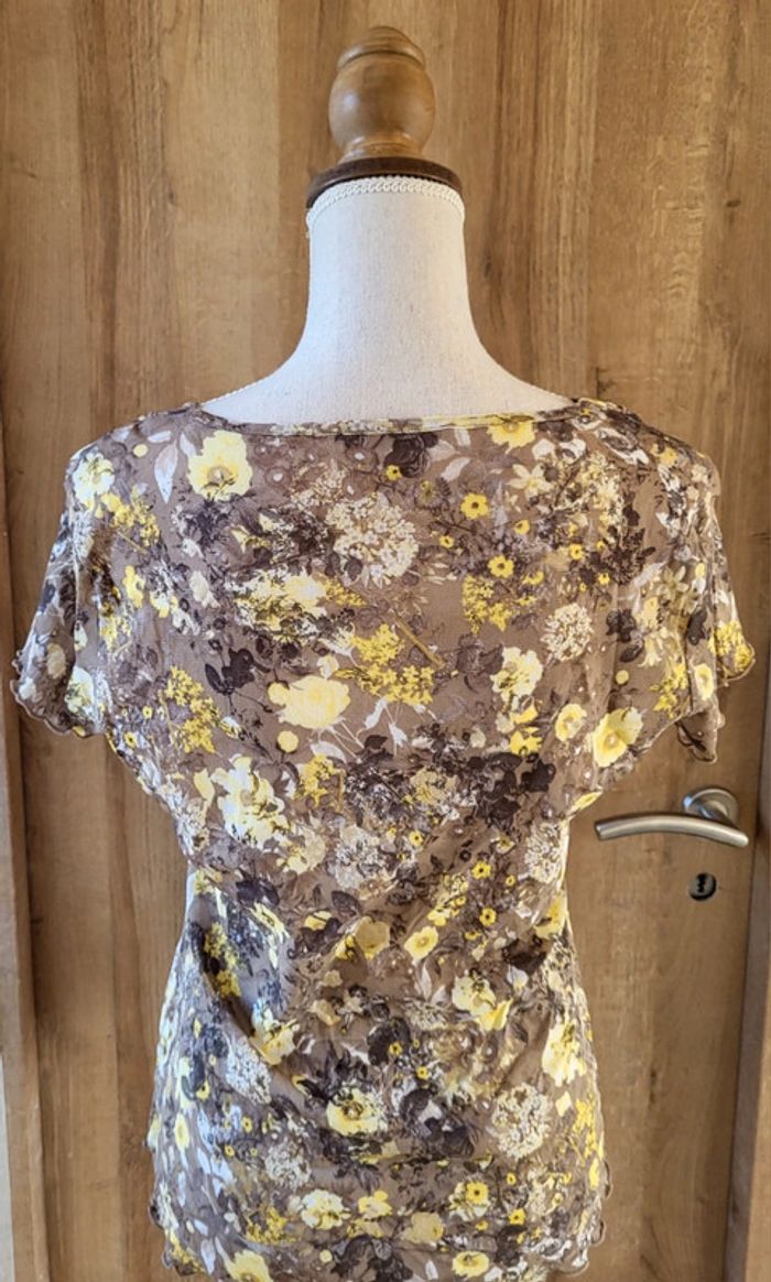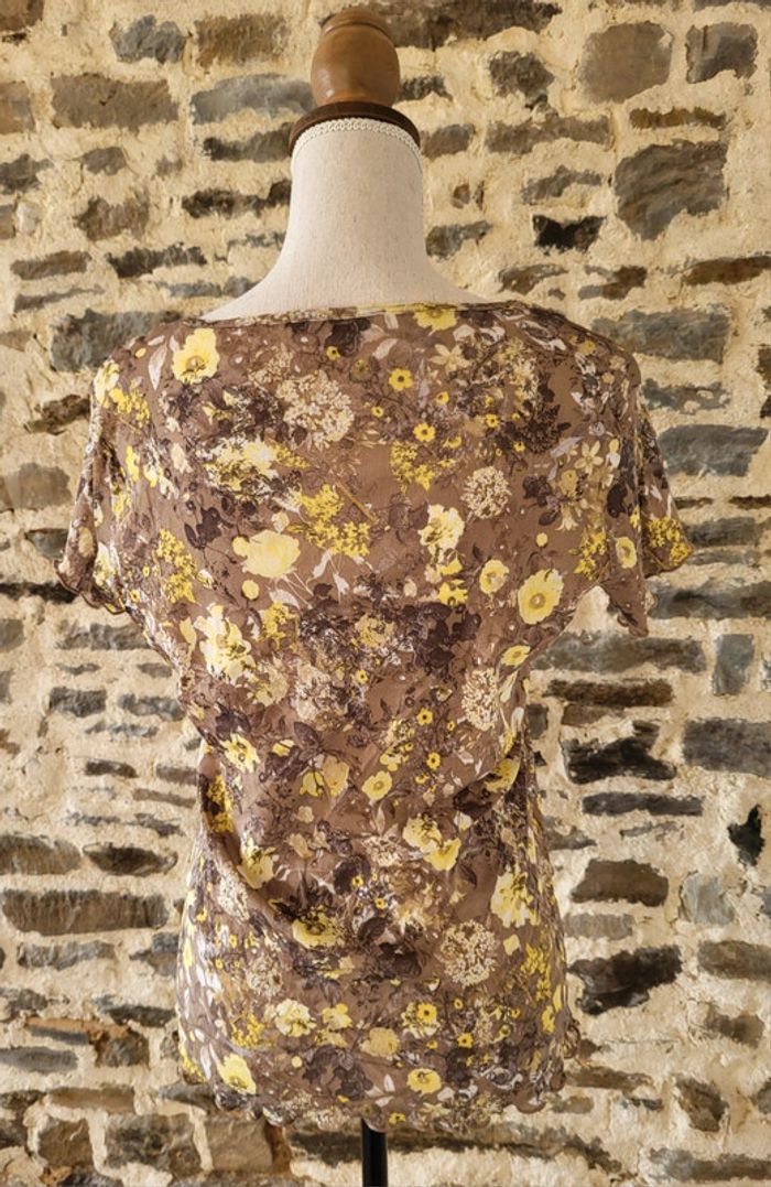 Blouse manches courtes fleurie jaune et marron beige Armand Thiery Taille 40 - photo numéro 8