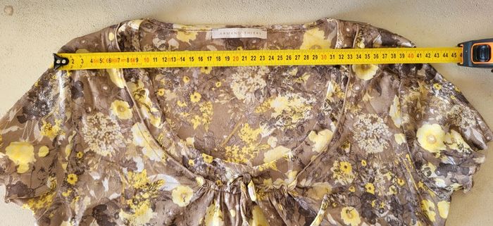 Blouse manches courtes fleurie jaune et marron beige Armand Thiery Taille 40 - photo numéro 10