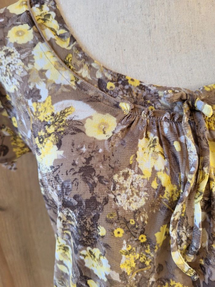 Blouse manches courtes fleurie jaune et marron beige Armand Thiery Taille 40 - photo numéro 9