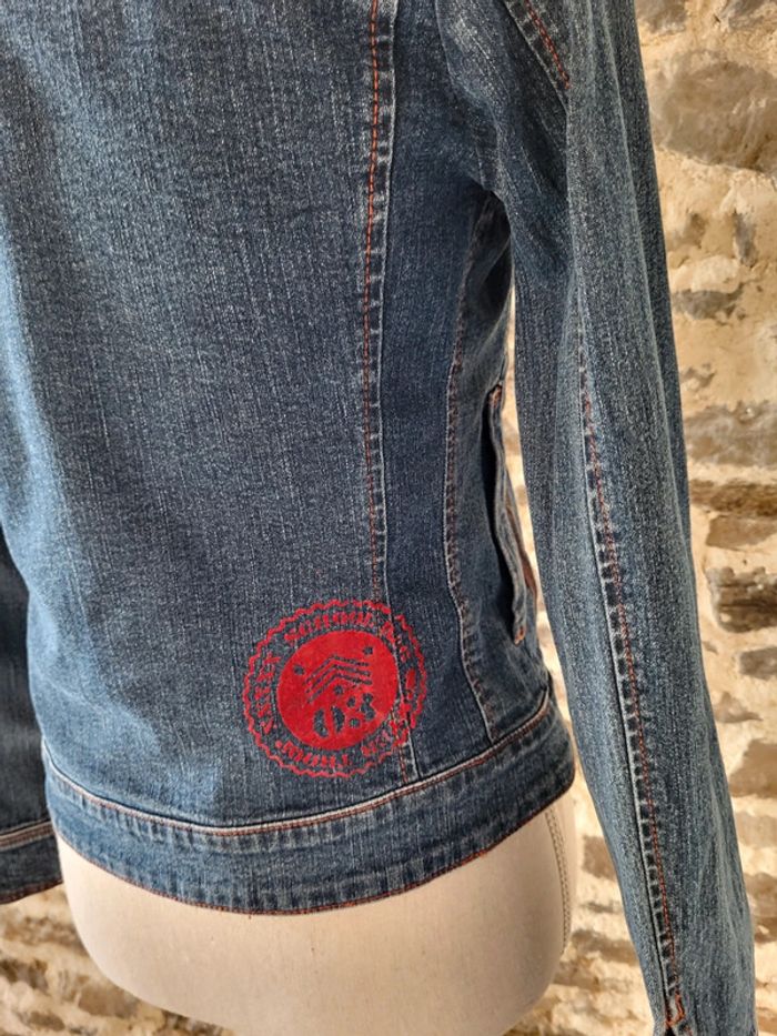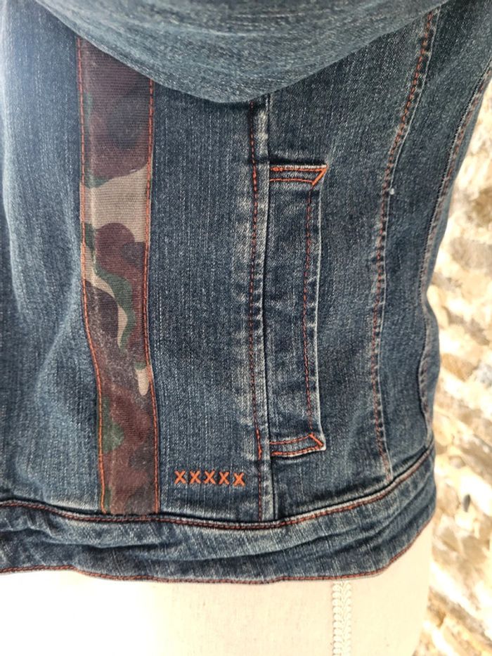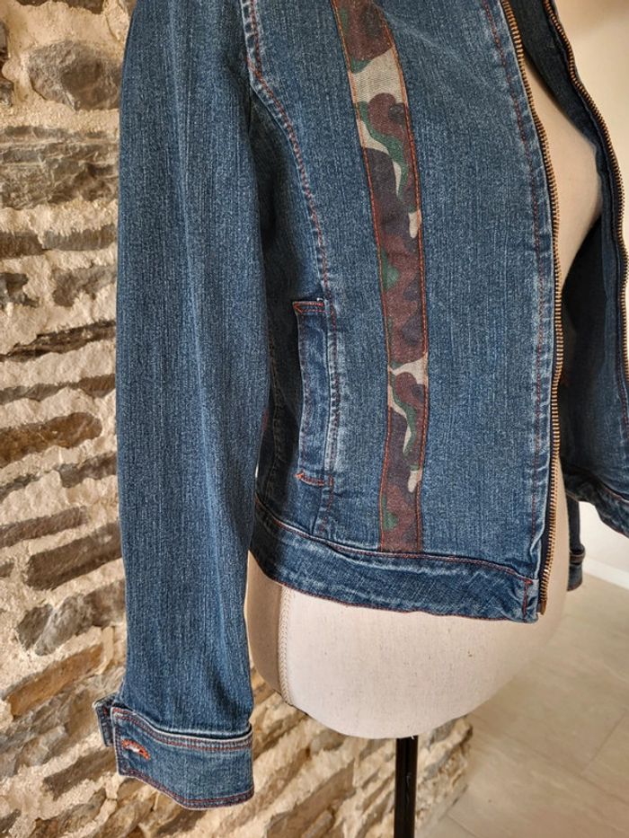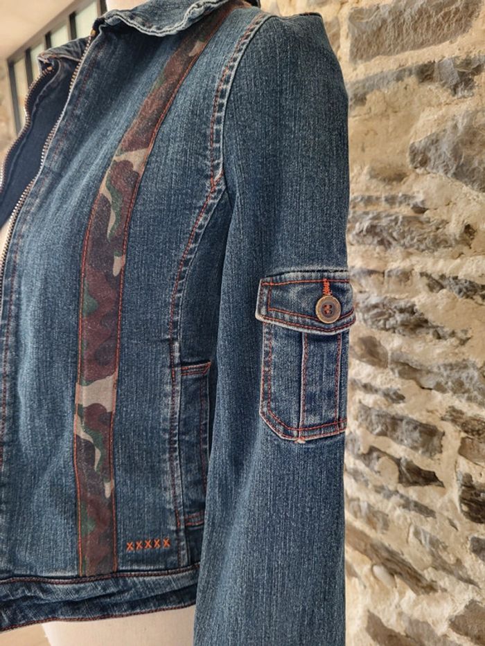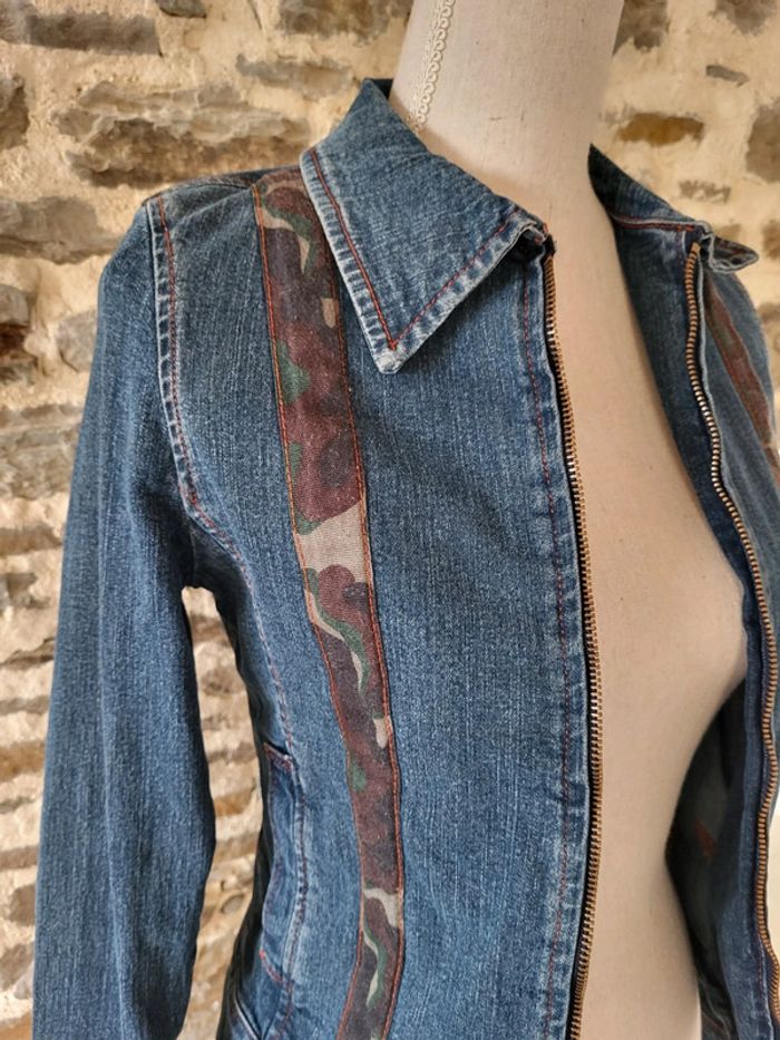 Très belle veste en jean bleu avec imprimé camouflage School Rag Taille 2 ou 30/32 (XXXS) Fermeture éclair En très bon état #taille32 #taille30 #schoolrag #xxxs #vesteenjean #bleu #camouflage #militarystyle