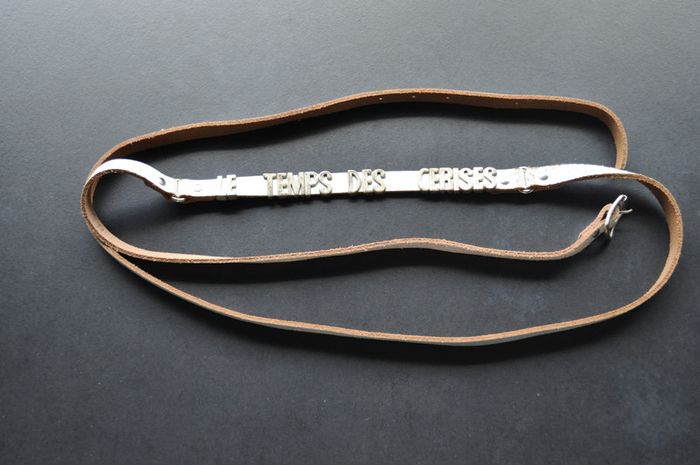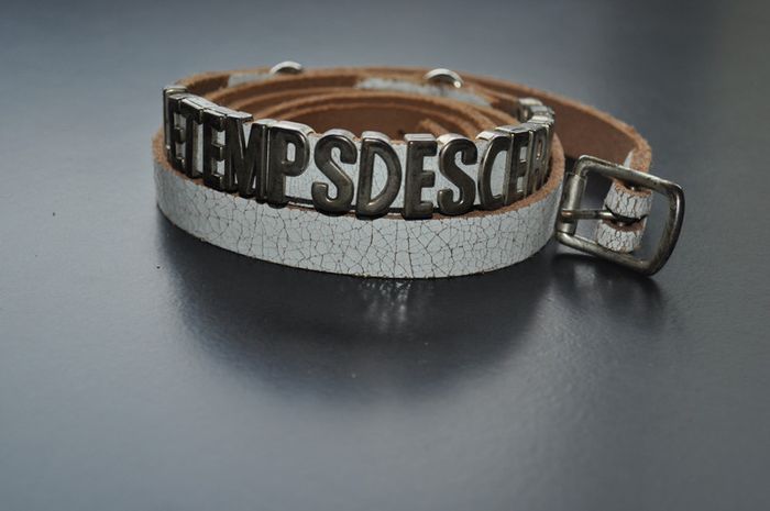 Ceinture blanche en cuir le Temps des Cerises double tour et lettre effet vieilli Taille 85