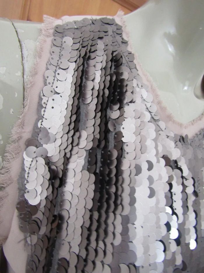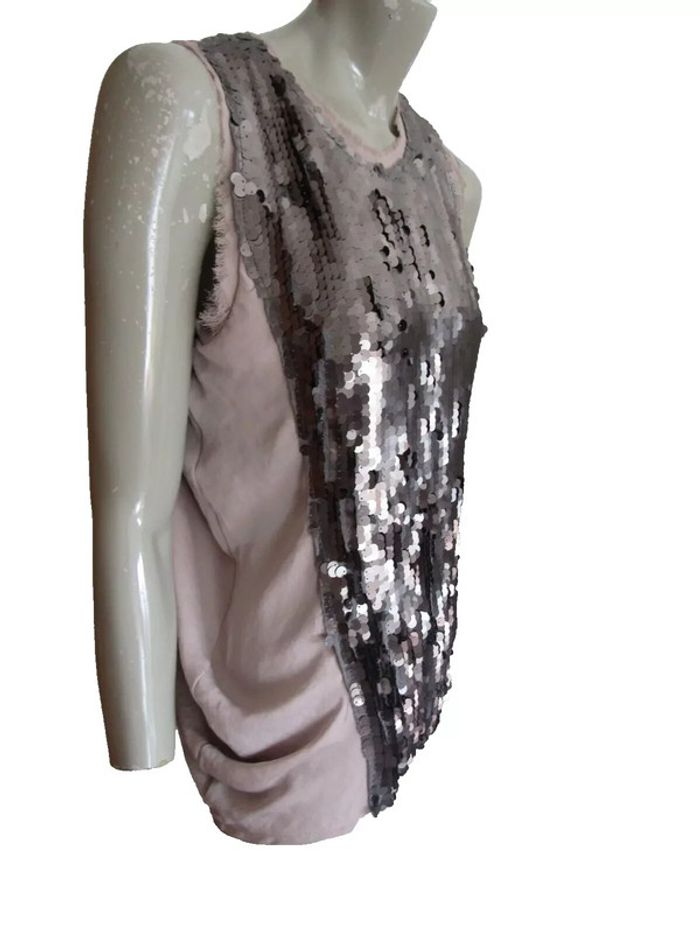 top tunique chic couleur rose avec paillettes grises devant marque imperial taille indiquée S = 36/38 mais bien confirmer avec les mesures prises en cms et a plat aisselles 46 longueur 63 envoi rapide 1 jour maxi après l'achat achats groupés = frais de port réduits
