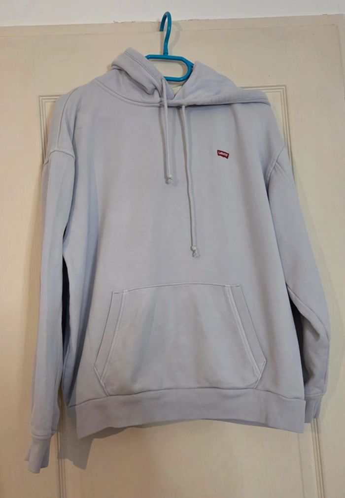 Sweat à capuche LEVI'S Taille XS Longueur : 65 cm Largeur sous bras : 61 cm Coloris gris bleuté Très bon état 2 petites traces de stylo (voir photos) ✨ Envoi rapide ✨ 🌹 Envoi groupé possible 🌹