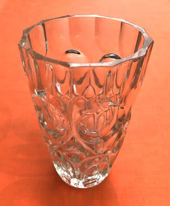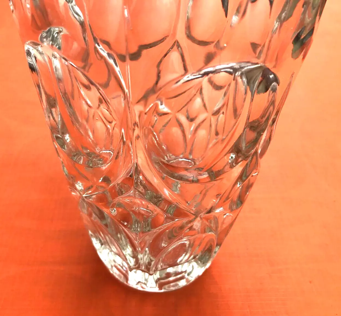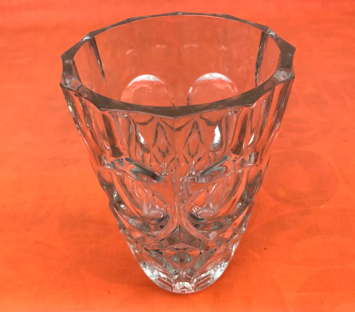 Vase à facettes de style art déco Verre transparent   Décor géométrique