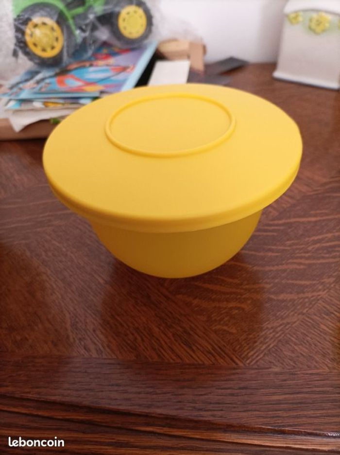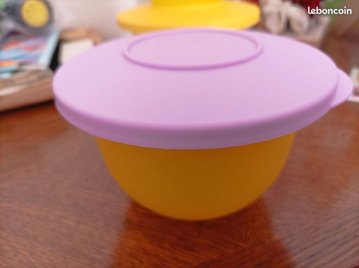 LOT 4 Bols gamme flash Tupperware 550 ml possibilité achat à l'unité coloris au choix à 10 € l'unité Jaune couvercle jaune Jaune couvercle violet Jaune couvercle vert Jaune couvercle bleu Articles en très bon état peu servis