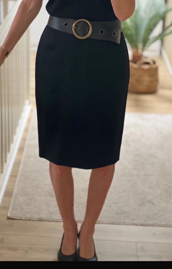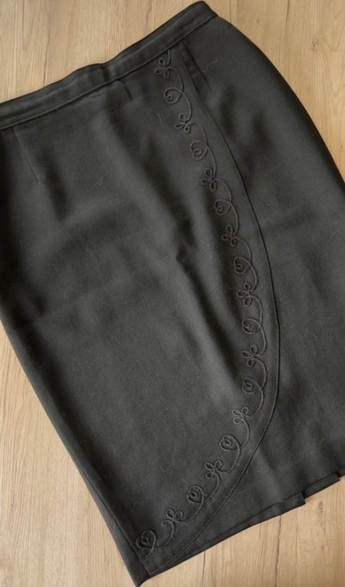 Magnifique jupe vintage noire brodée mi-longue (T. XL / 42) - photo numéro 1