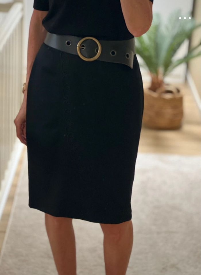 Magnifique jupe vintage noire brodée mi-longue (T. XL / 42) - photo numéro 6