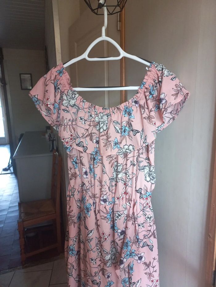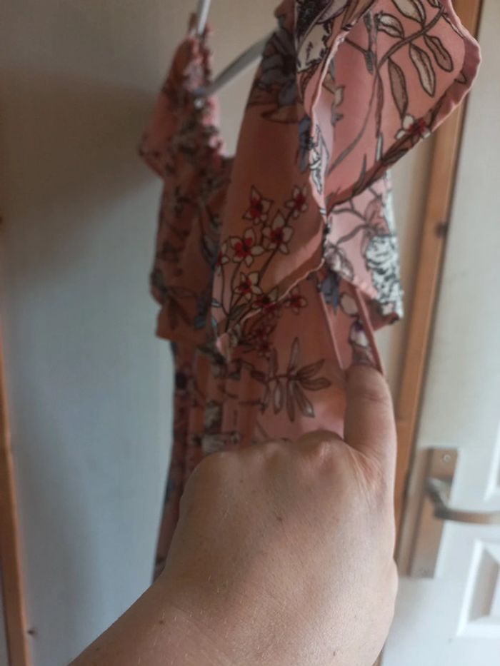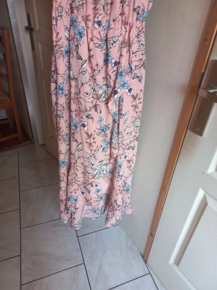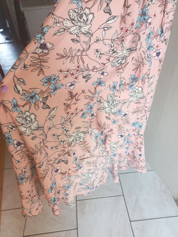 Robe longue rose pâle fleurie Taille M Effet portefeuille sur la jupe