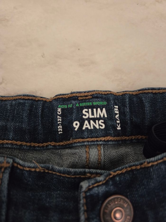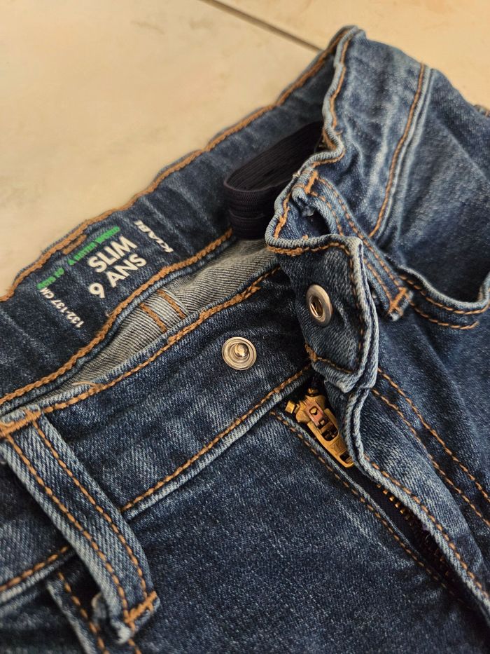 👦 jeans slim qui peut se régler à la taille 📏 Taille : 9 ans Dimensions : 132 / 137 cm 🏷 De la marque : Kiabi 🌈 couleur : bleu marine 👖 jeans déjà porté encore en bon état