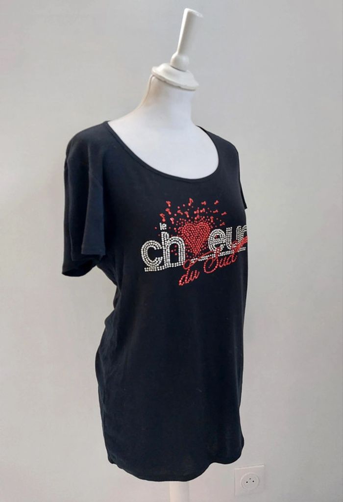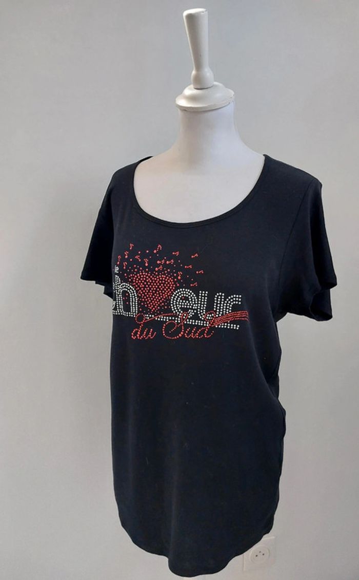T-shirt manches courtes noir avec strass femme taille L - photo numéro 2