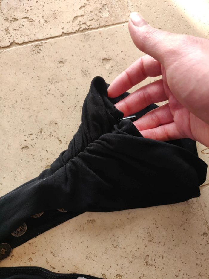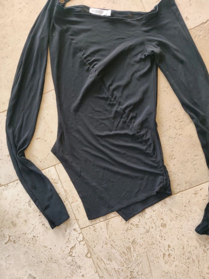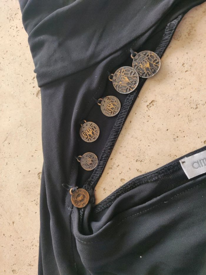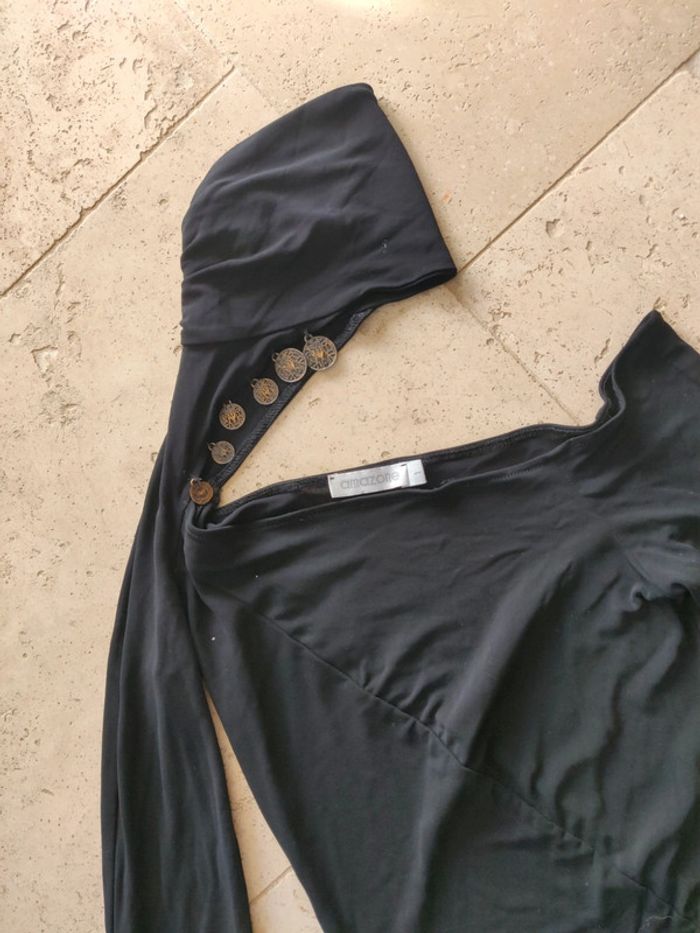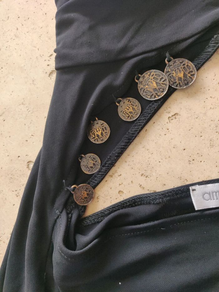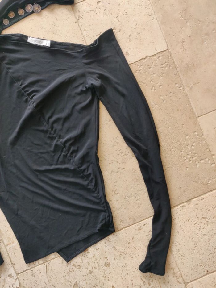 Haut asymétrique vintage années 2000 y2k noir avec tour de cou et breloques - photo numéro 3