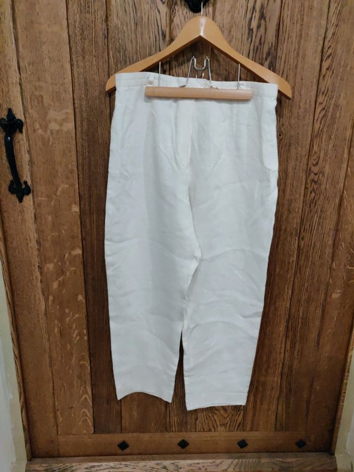 Pantalon léger 100 % lin jambes larges crème taille 42 - photo numéro 3