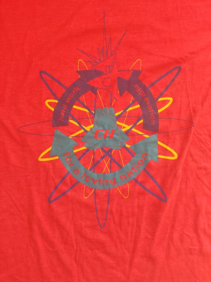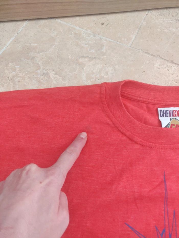 Tee shirt Chevignon vintage ultra rare rouge logo impeccable sur le devant motif scientique Quelques tâches (voir photos) qui partiront avec des produits adaptés On adore 😍 Envoi rapide et soigné