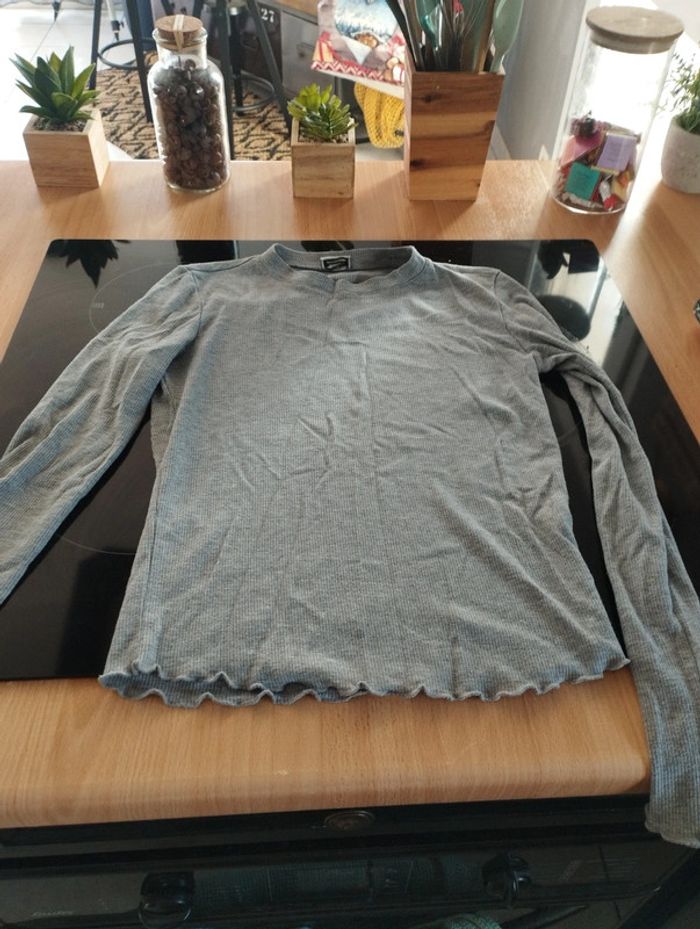Vend tee shirt manches longues femme gris Pimkie taille S