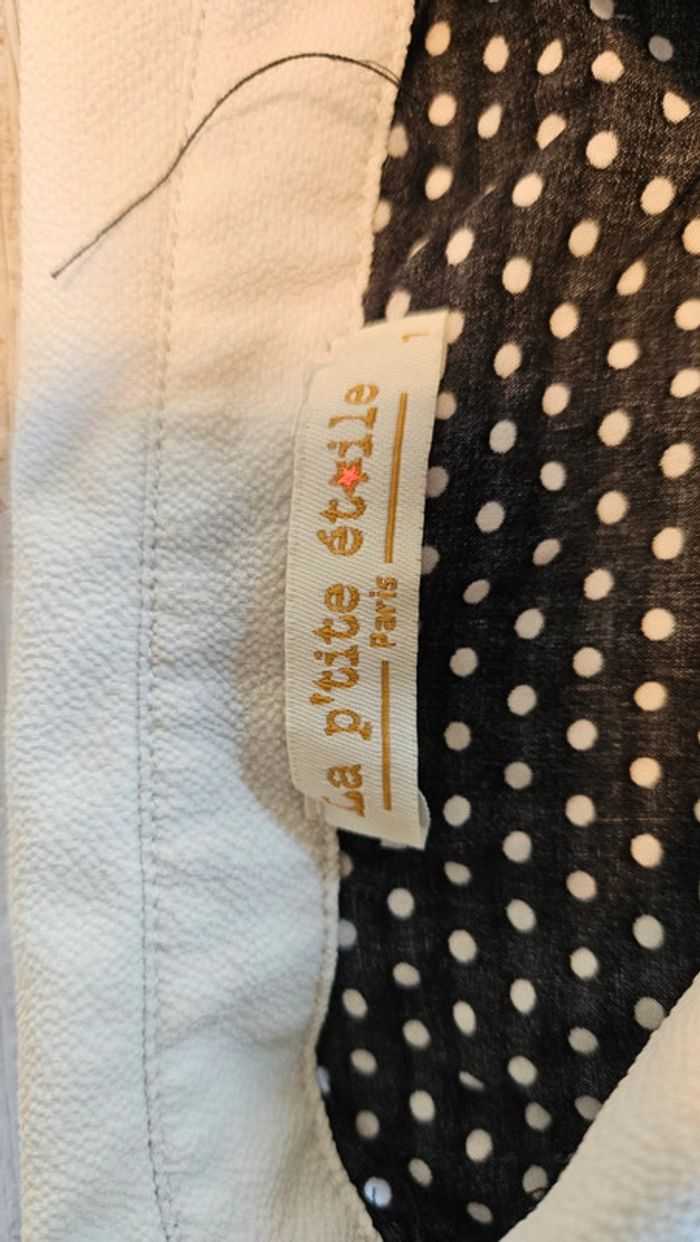 Blouse fluide sans manche, noire à points blancs, col blanc, La p'tite étoile, Paris, XS/S - photo numéro 5