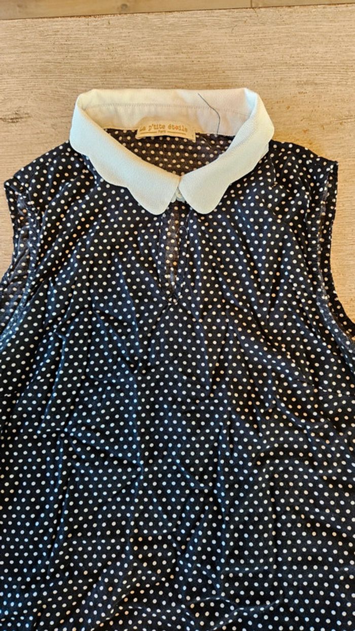Blouse fluide sans manche, noire à points blancs, col blanc, La p'tite étoile, Paris, XS/S - photo numéro 2