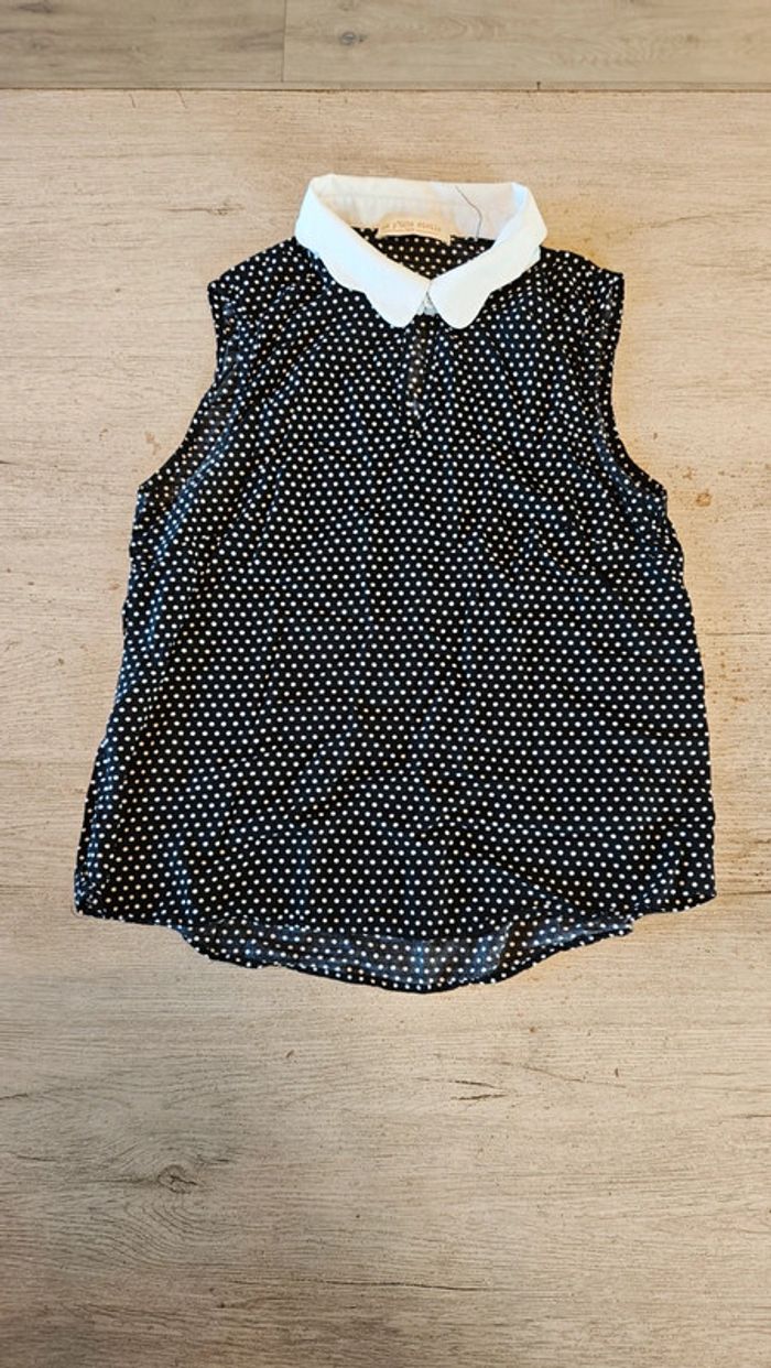 Blouse fluide sans manche, noire à points blancs, col blanc, La p'tite étoile, Paris, XS/S - photo numéro 1