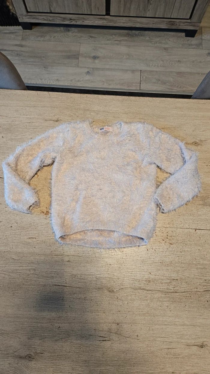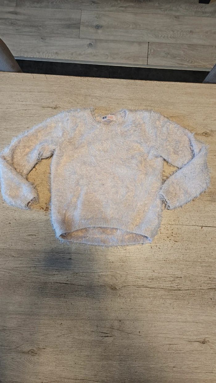 Joli pul à col rond et manches longues. Il est rose très clair avec des fils brillants. Il a éte mis mais est encore très bien. Convient mieux pour du 6 à 7 ans #deborahtock_6ans #deborahtock_7ans