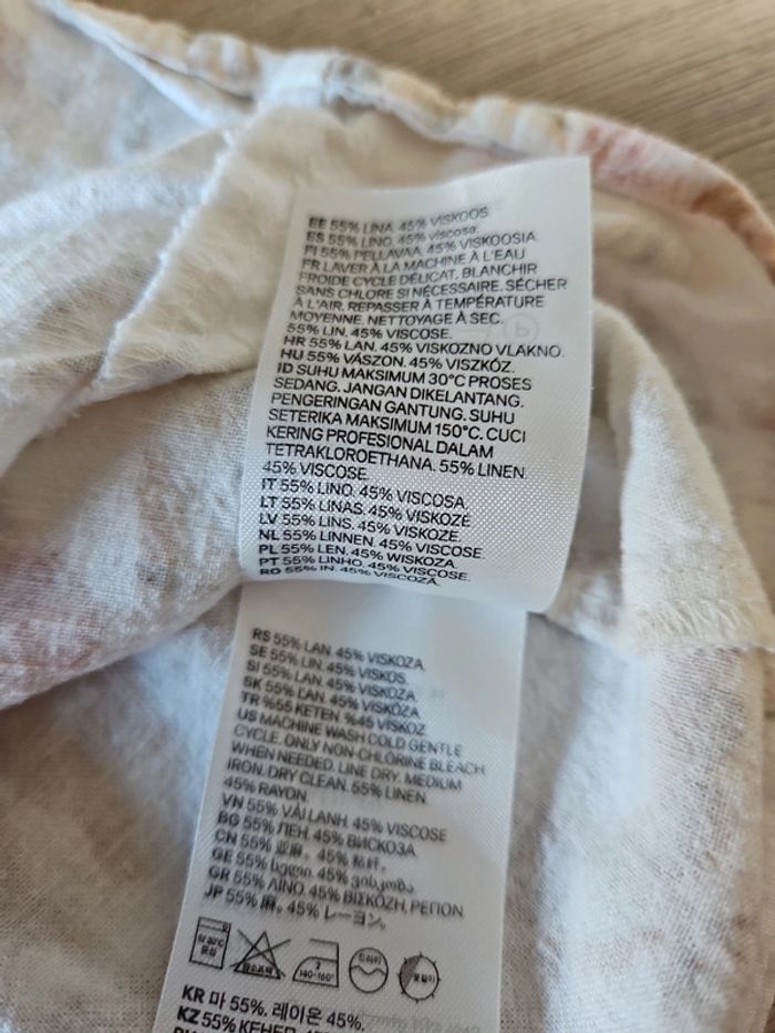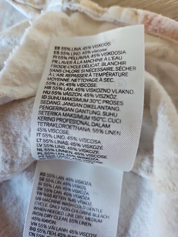 Croc top large beige avec fleurs pales, en lin/viscose, H&M, taille S - photo numéro 13