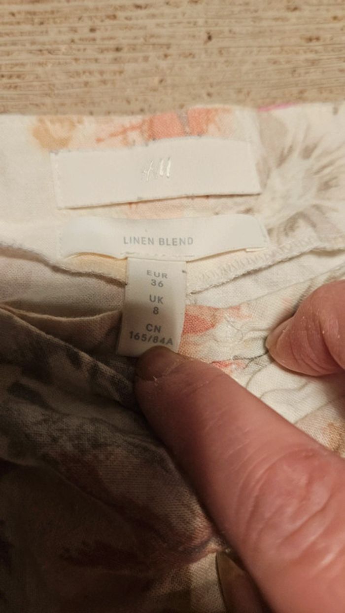 Croc top large beige avec fleurs pales, en lin/viscose, H&M, taille S - photo numéro 8