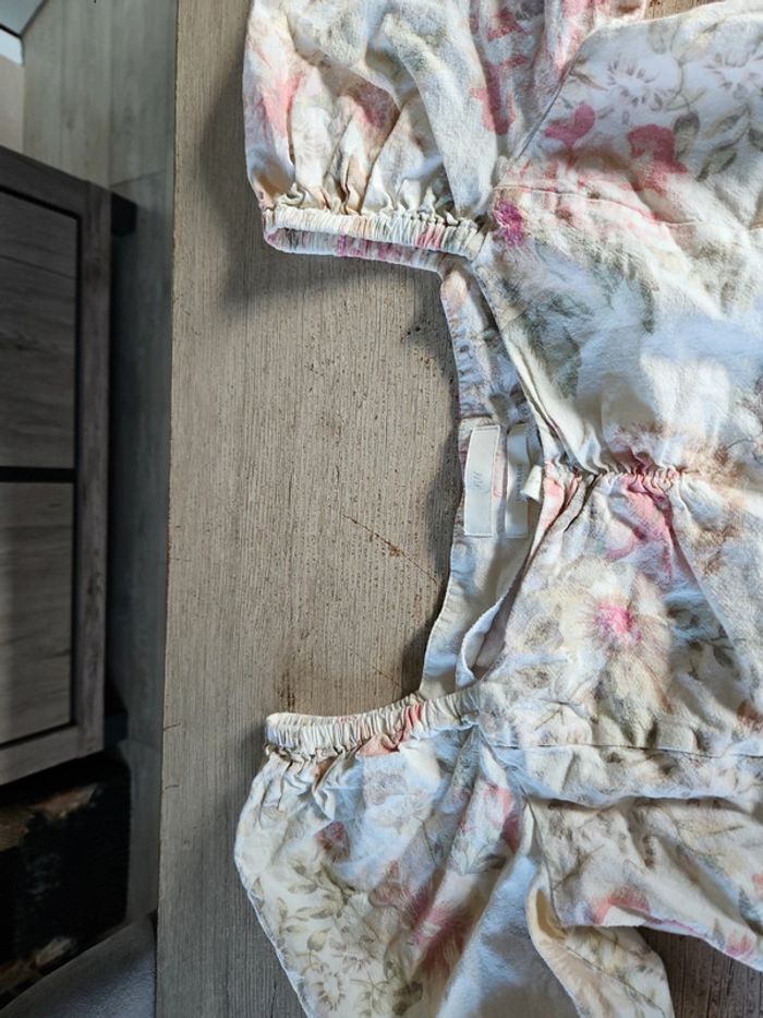 Croc top large beige avec fleurs pales, en lin/viscose, H&M, taille S - photo numéro 1
