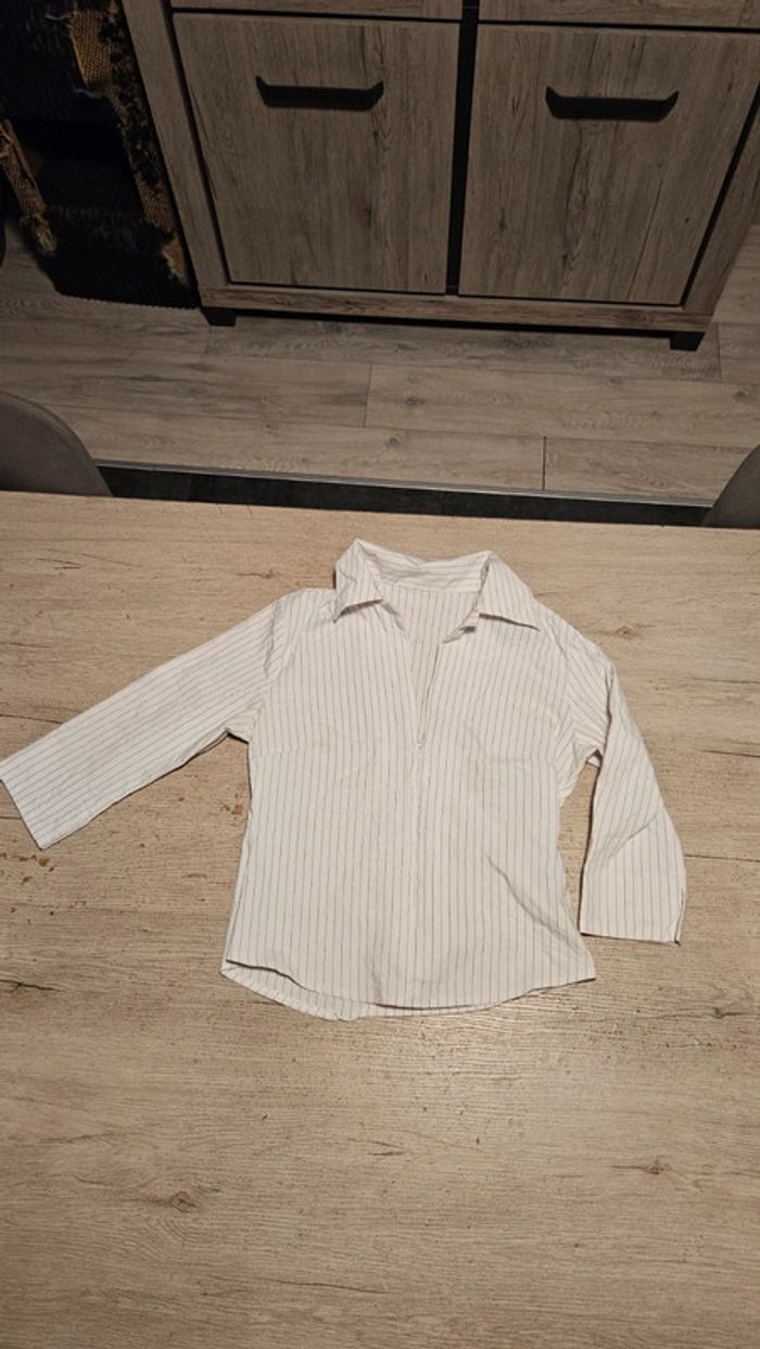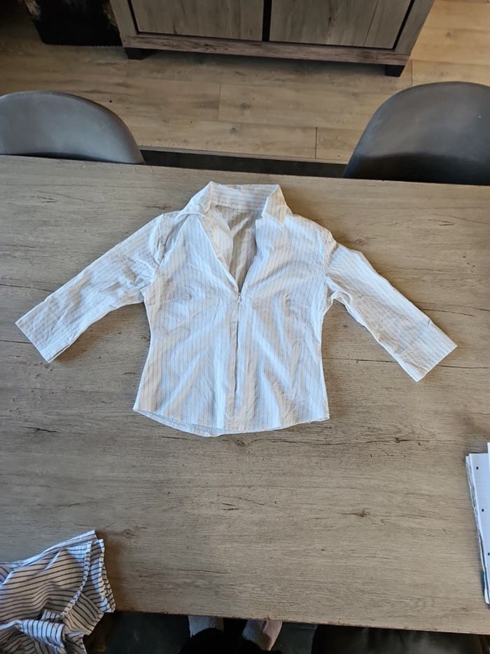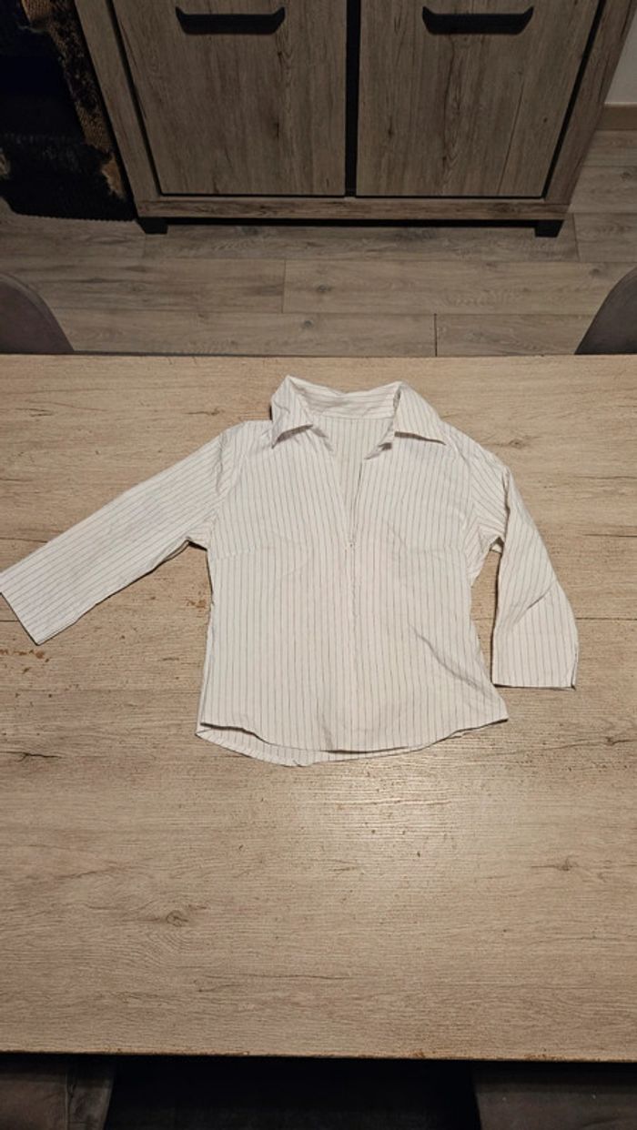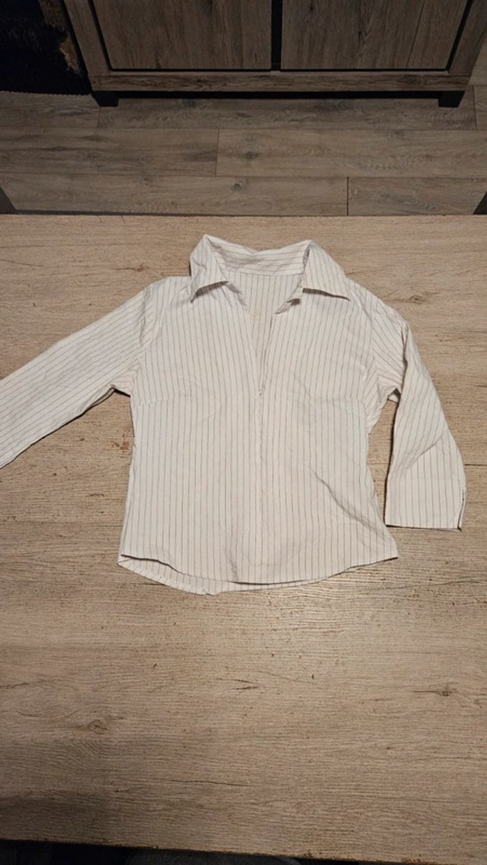 Chemisier classique femme stretch, blanc à fines lignes grises, avec tirette,  taille S/M - photo numéro 1