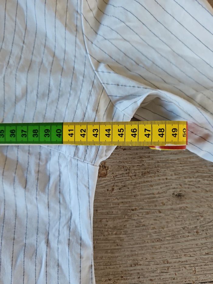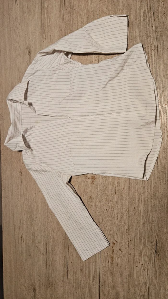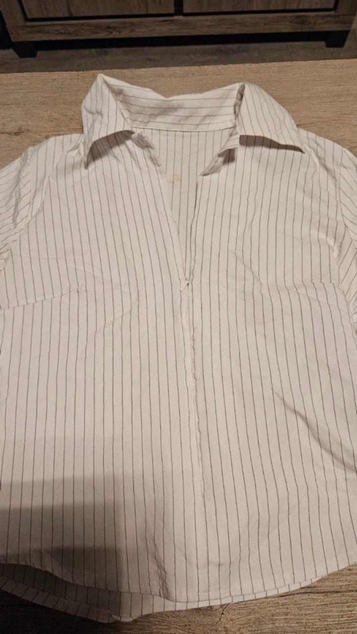 Chemisier classique femme stretch, blanc à fines lignes grises, avec tirette,  taille S/M - photo numéro 2