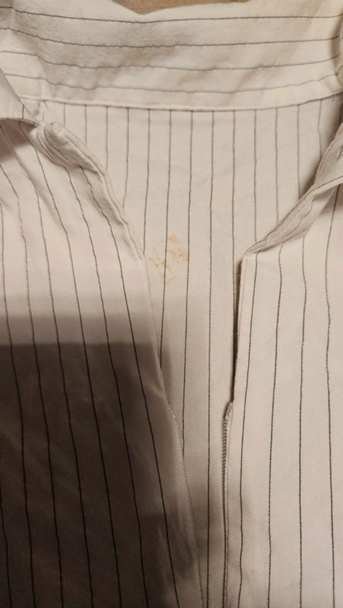 Chemisier classique femme stretch, blanc à fines lignes grises, avec tirette,  taille S/M - photo numéro 10