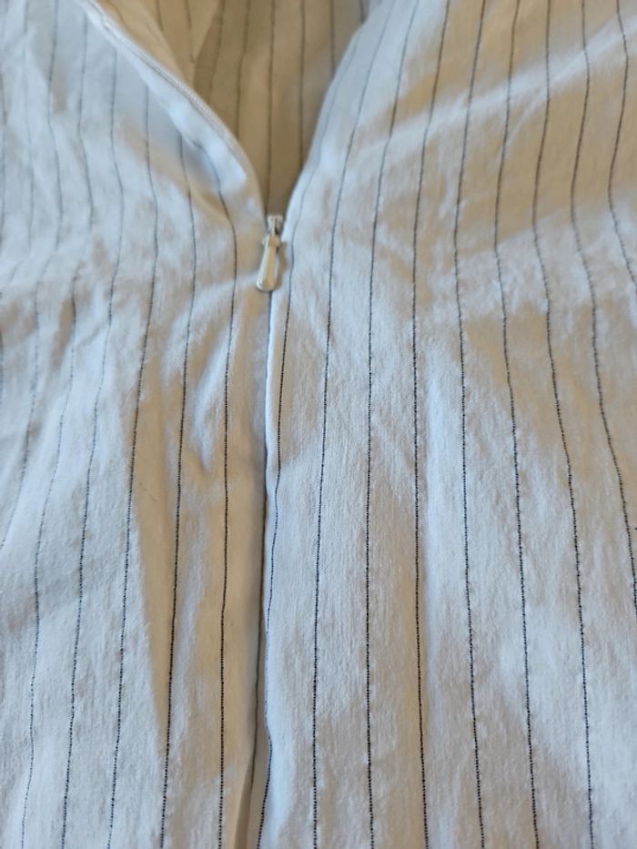 Chemisier classique femme stretch, blanc à fines lignes grises, avec tirette,  taille S/M - photo numéro 4