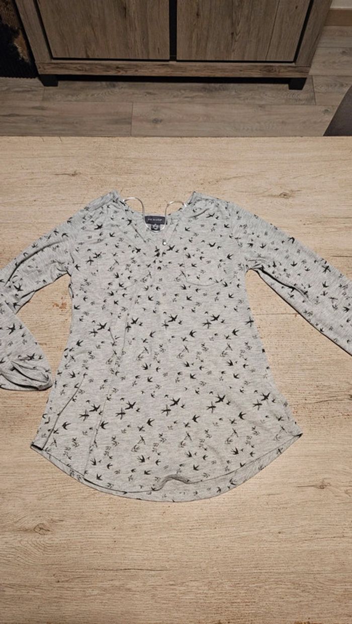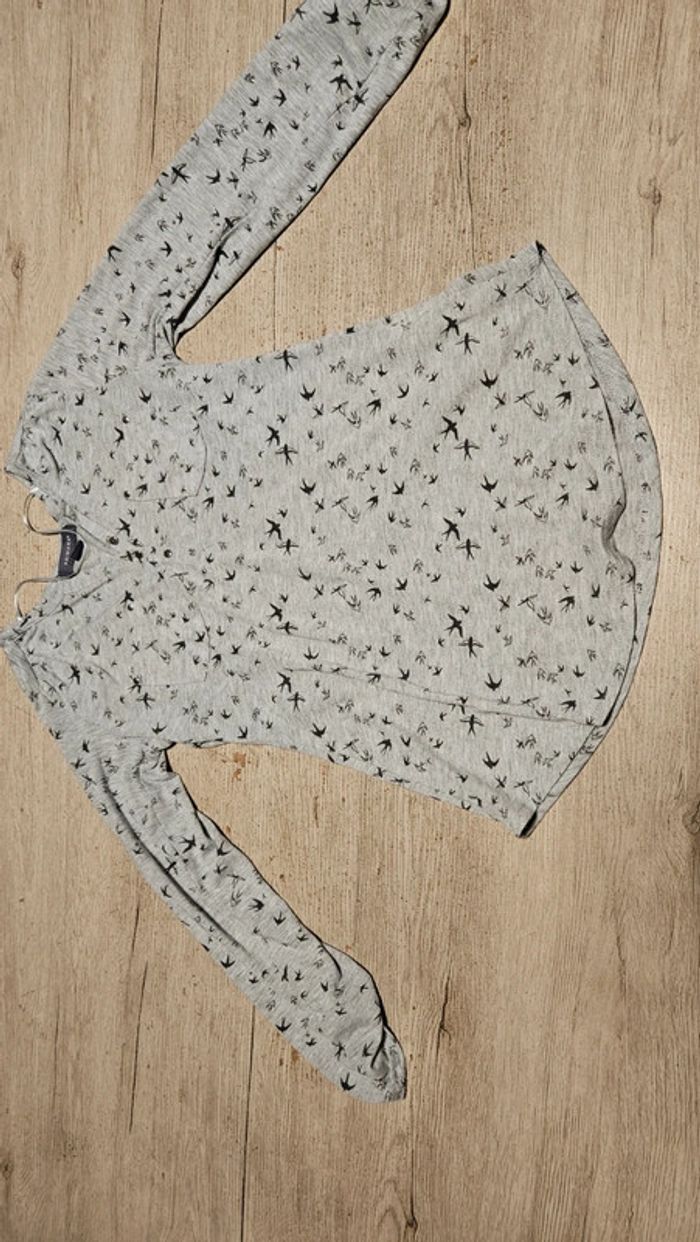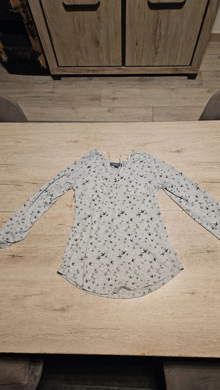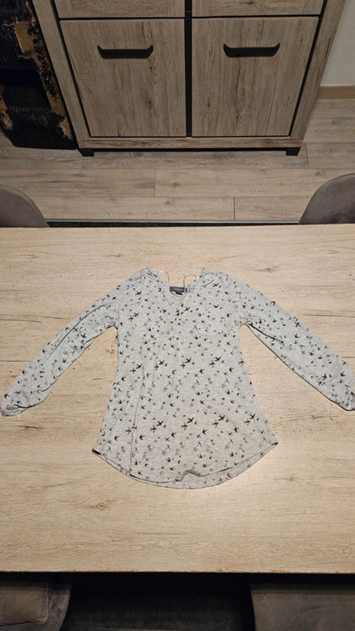 Chemise légère gris clair à dessin gris foncé, manches longues, Primark, taille XS (34/36) - photo numéro 1