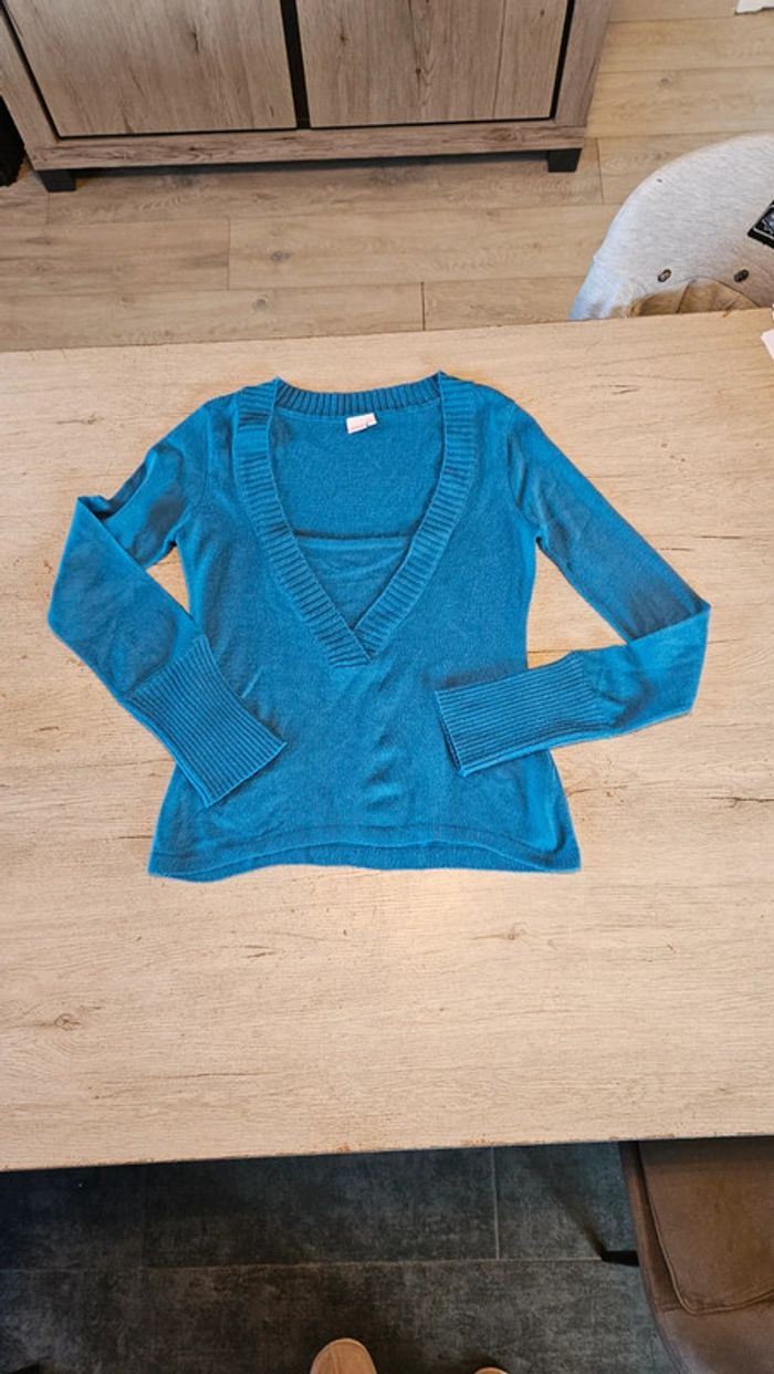 Pull bleu à manches longues, 2 en 1 avec col plongeant, 3 Suisses, taille 38/40 - photo numéro 1