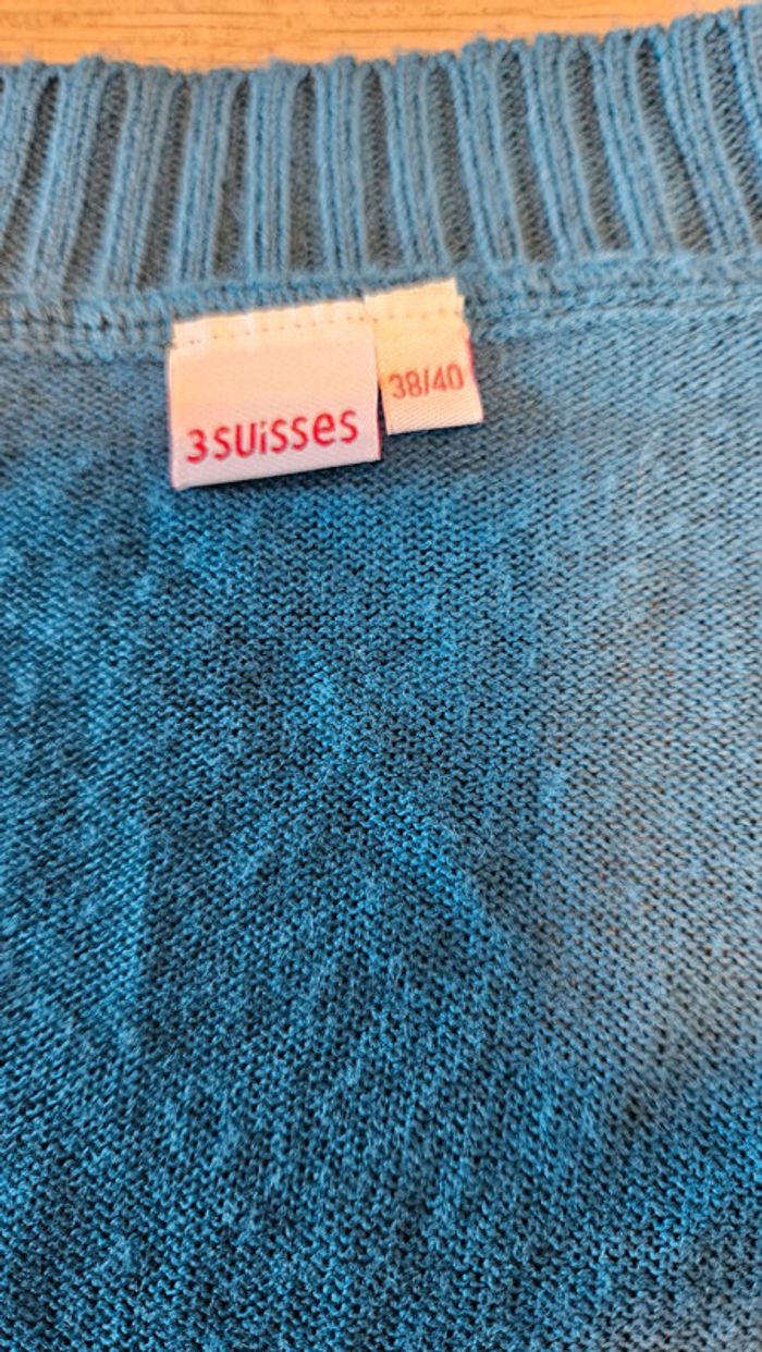 Pull bleu à manches longues, 2 en 1 avec col plongeant, 3 Suisses, taille 38/40 - photo numéro 5