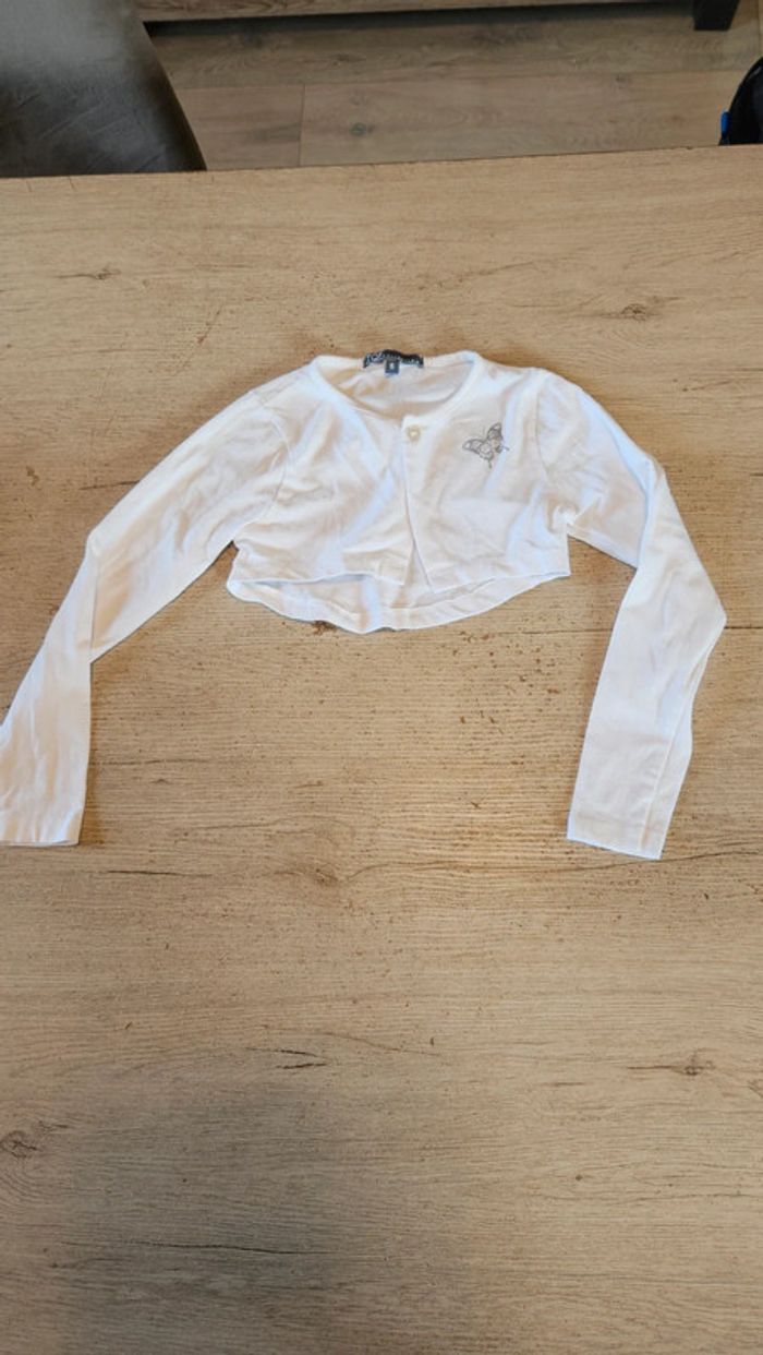 Gilet court blanc à manches longues, TQF Collection, 6 ans, nickel